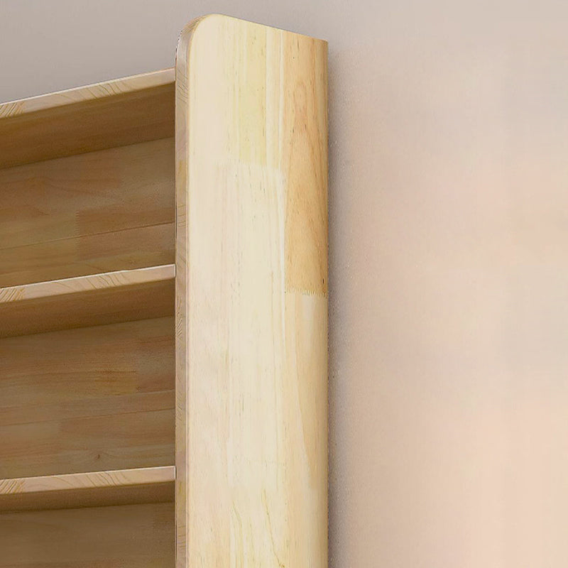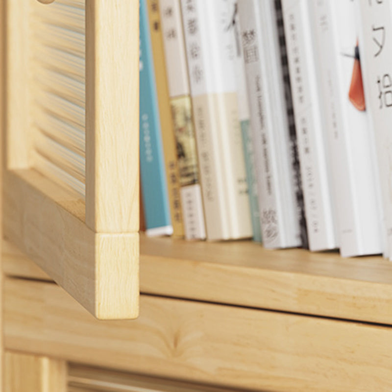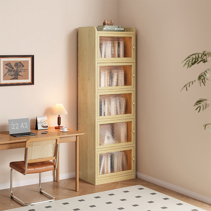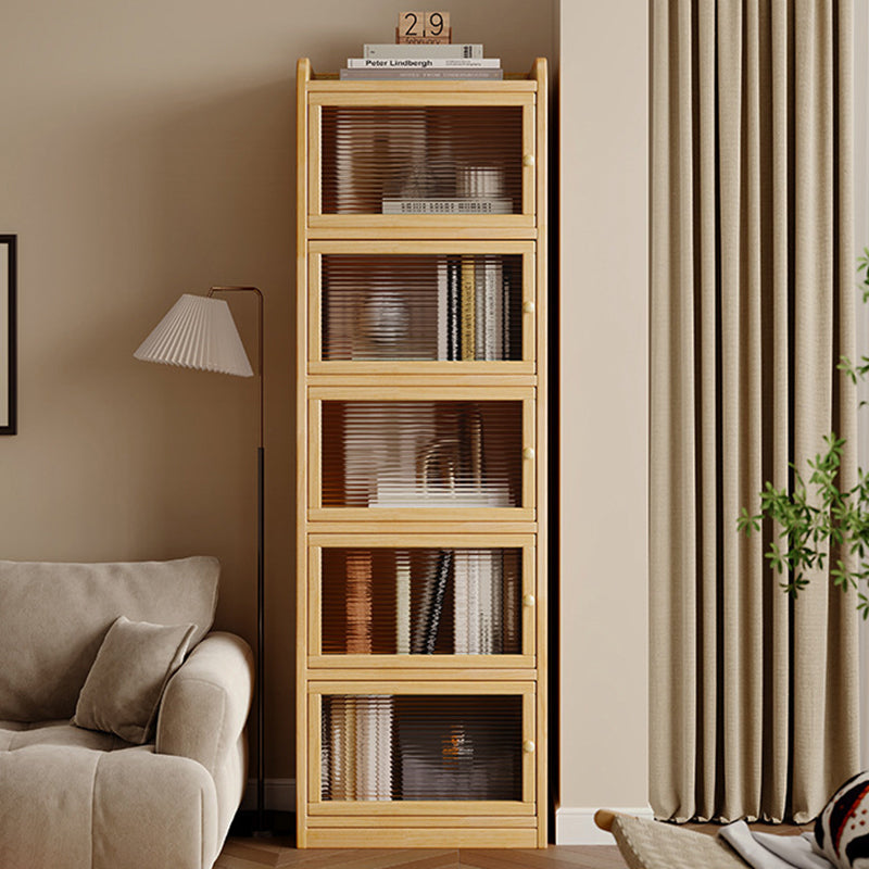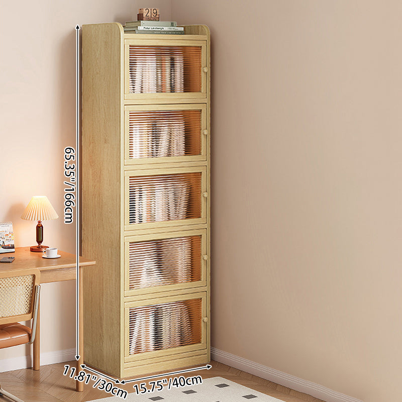 This modern minimalist storage cabinet features solid wood shelves combined with clear acrylic accents, offering a 6-tier design in natural wood tones. Its rectangular structure provides strong load-bearing support and stable construction, making it perfect for organizing books, décor, or daily essentials in the living room.