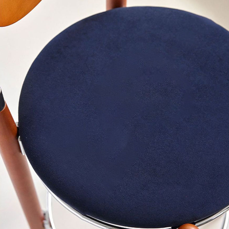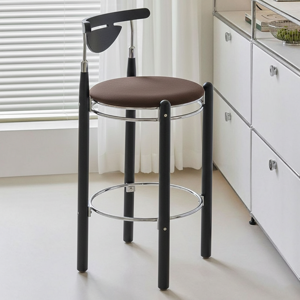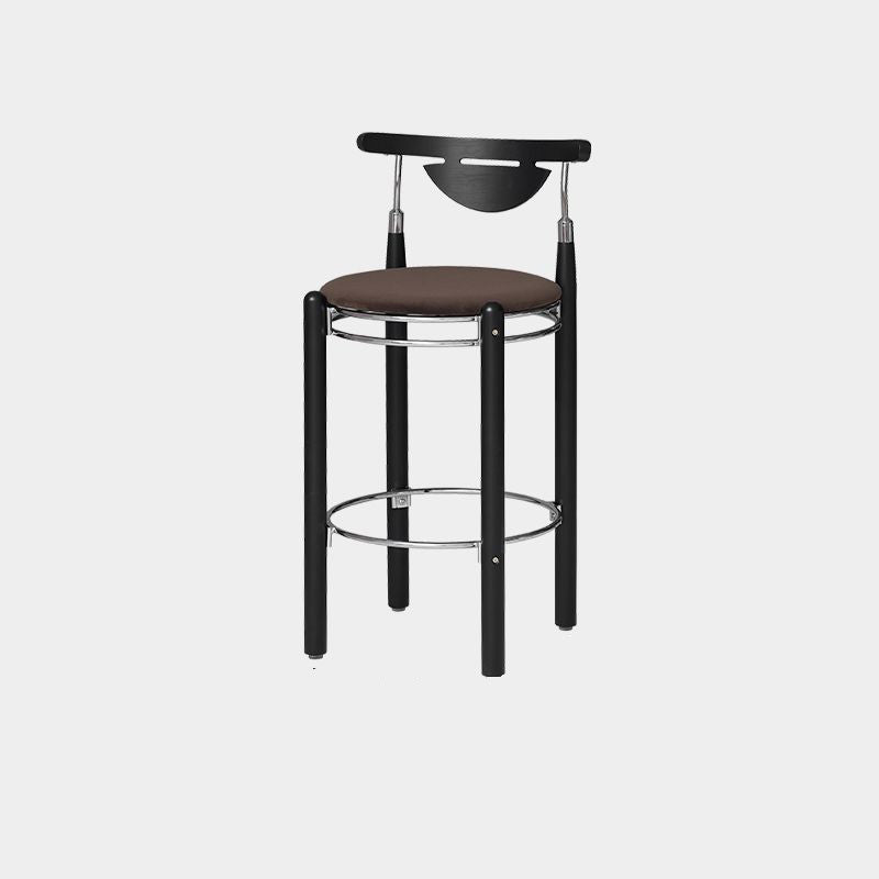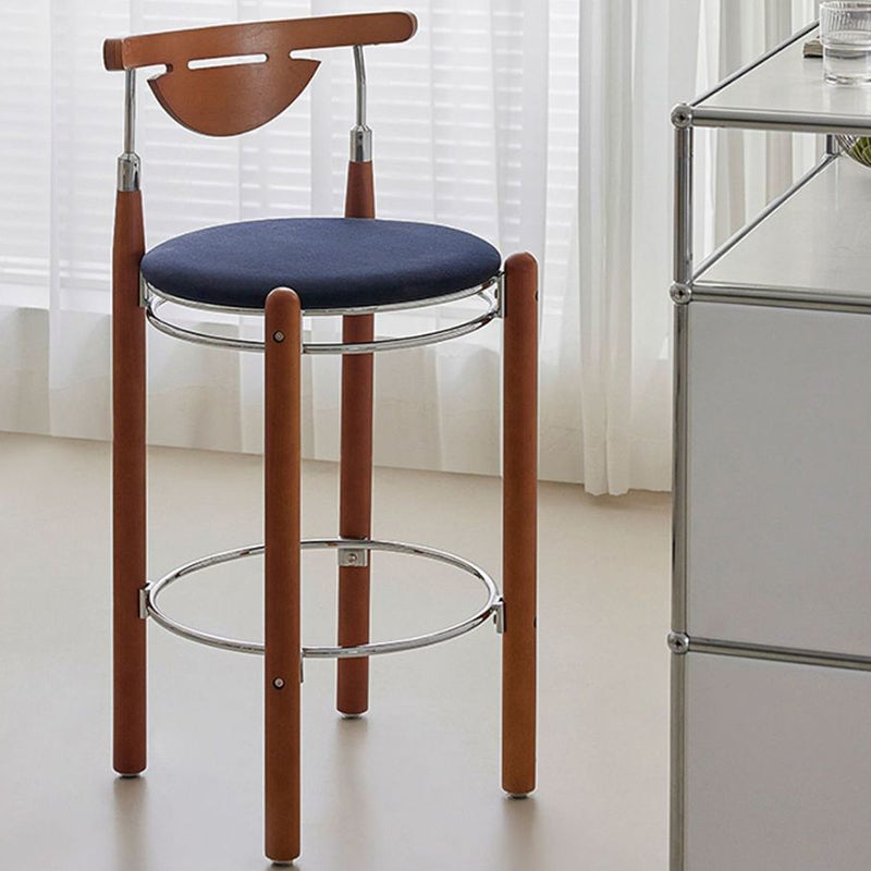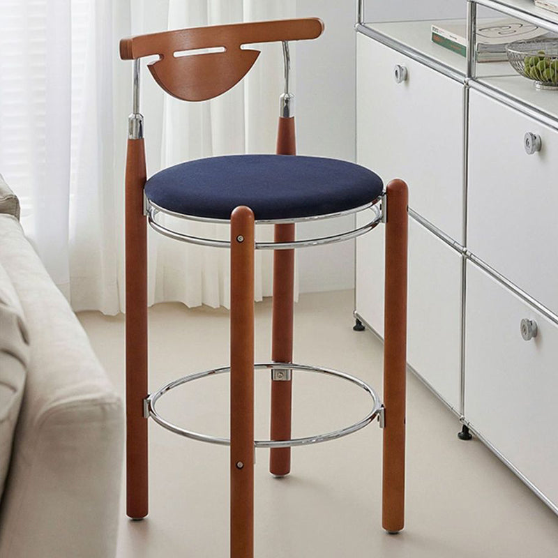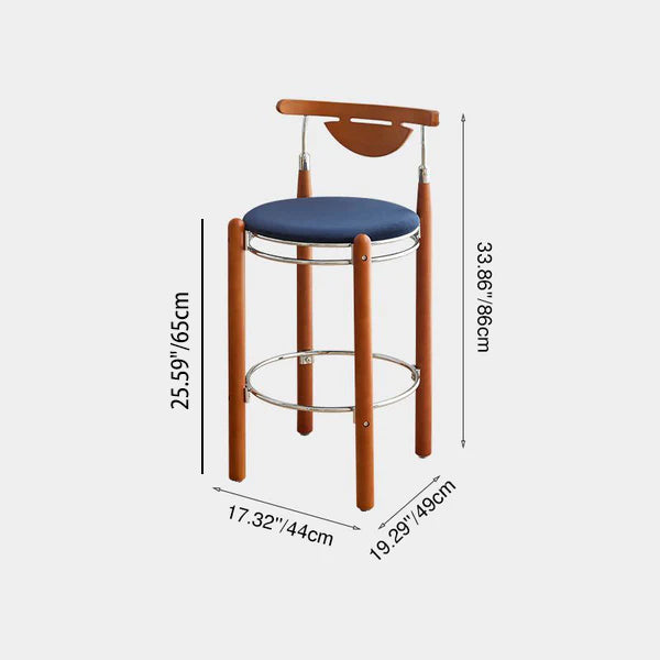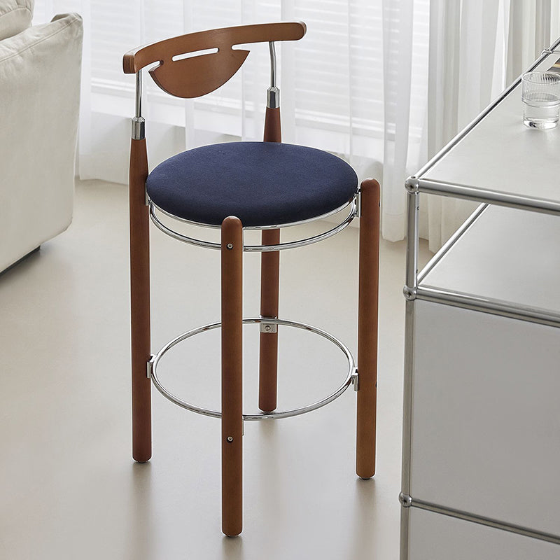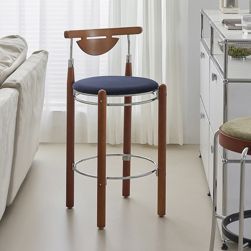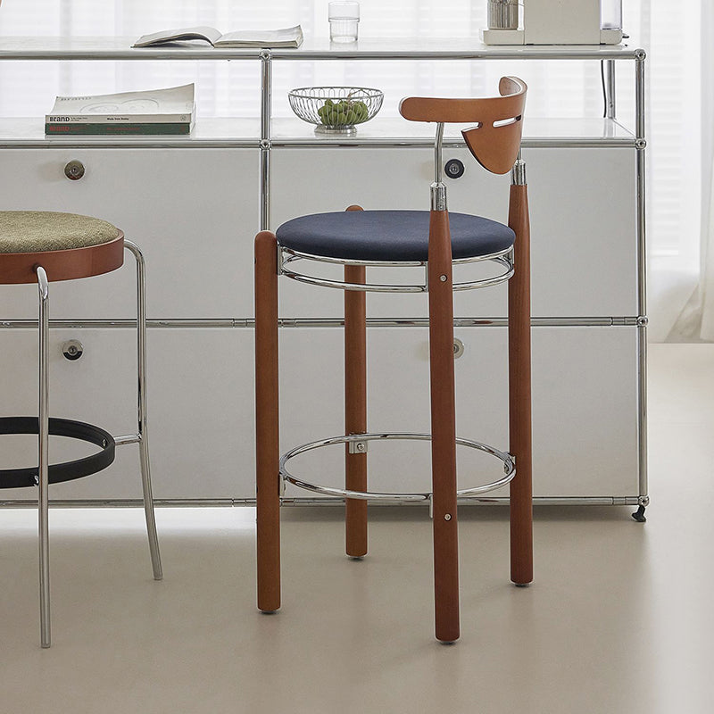 Upgrade your dining or kitchen space with this modern bar stool featuring a sleek plated iron frame, warm beech wood legs, and a smooth plywood backrest. The wide round cushioned seat is filled with high-resilience foam, providing balanced softness for long-lasting comfort. Designed with a supportive backrest and a metal footrest ring, it offers a relaxing seating experience ideal for dining rooms, kitchen islands, cafés, or home bars. A perfect blend of modern design, durable materials, and everyday comfort.