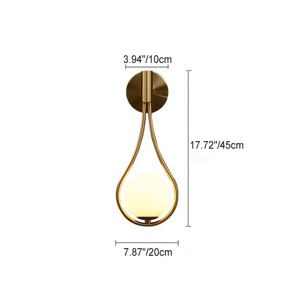 Applique Murale Moderne de Luxe en Verre de Fer en Forme de Goutte d'Eau Ronde à 1 Lumière