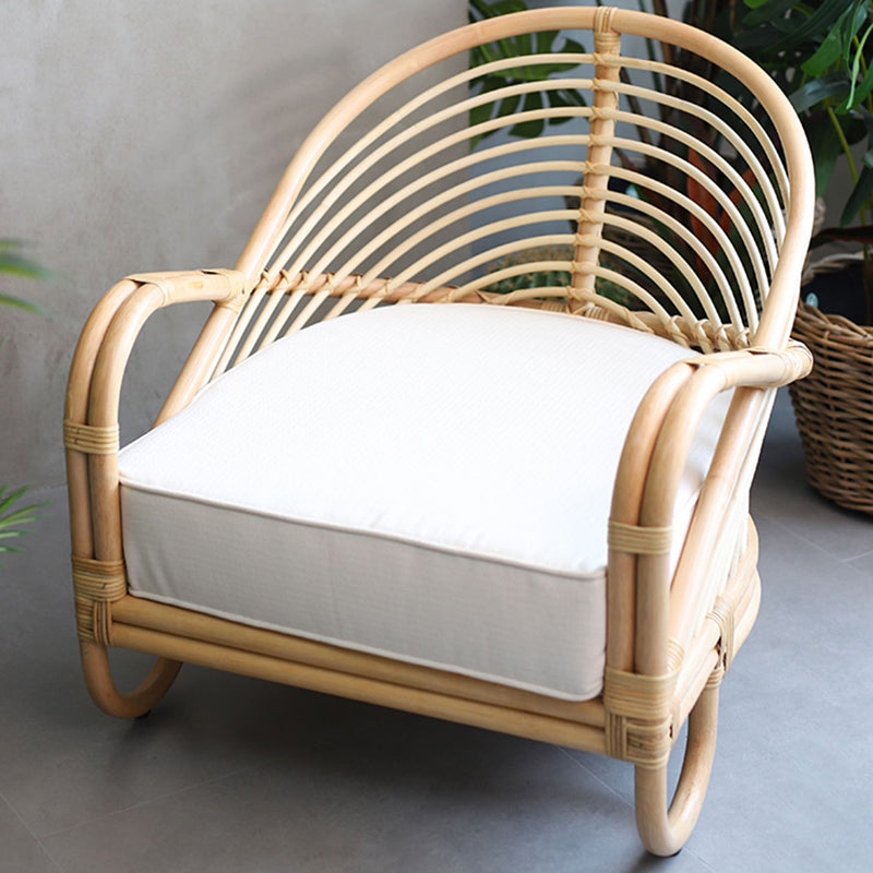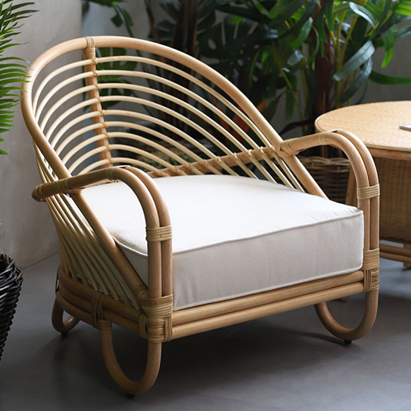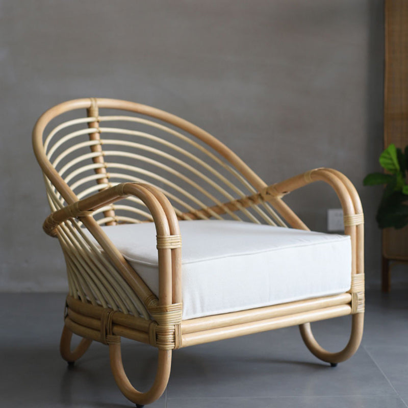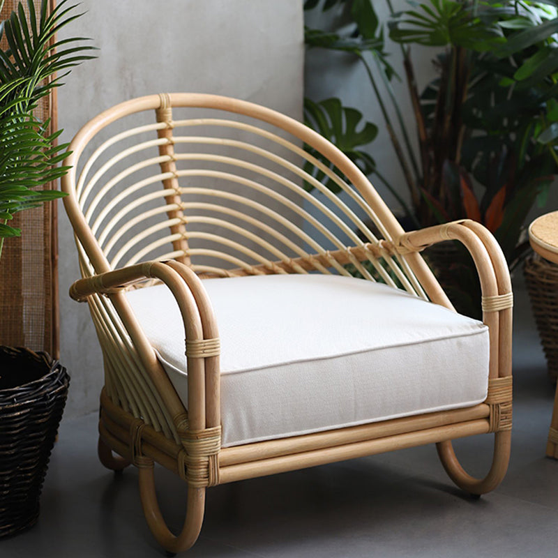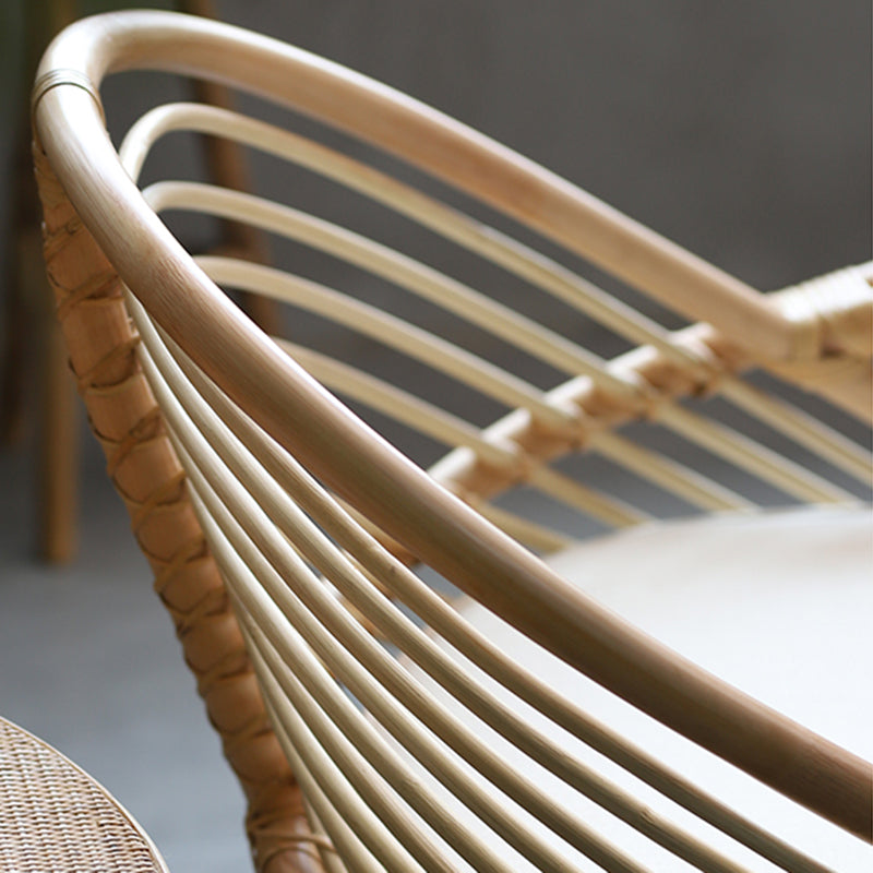 Crafted from premium natural Indonesian rattan, the chair is meticulously handwoven by skilled artisans. The continuous arc creates a light, sculptural appearance while offering a naturally wrapped and supportive seating experience.The tightly arranged rattan strands follow the curved frame, creating a rhythmic linear texture that highlights the beauty of natural materials.