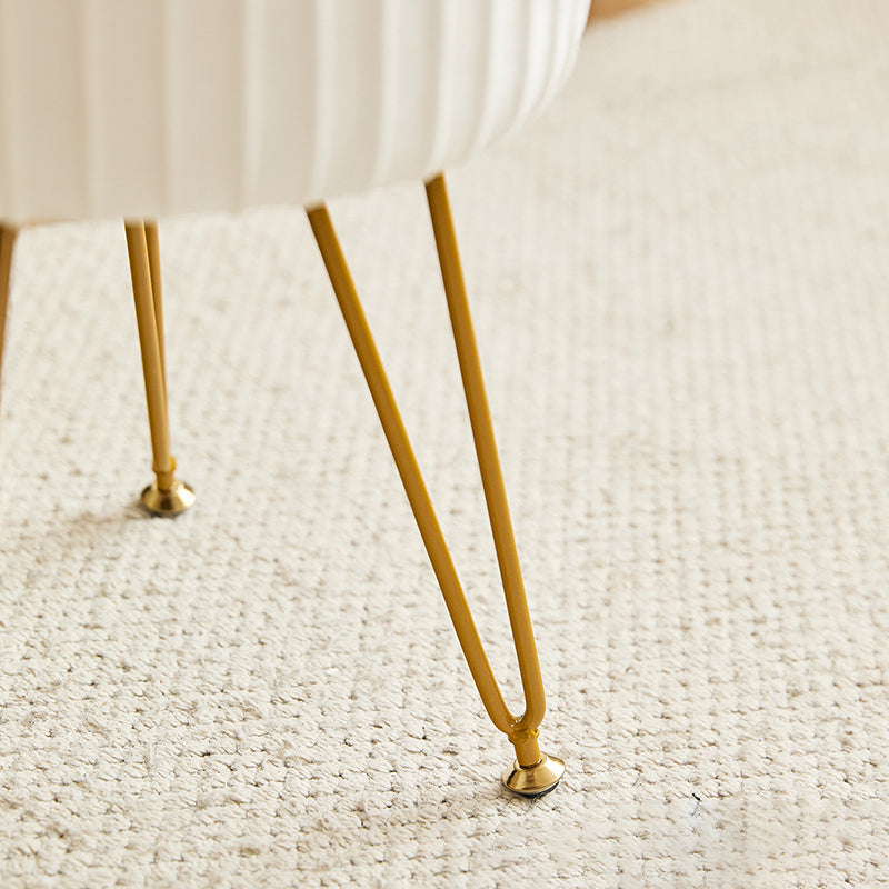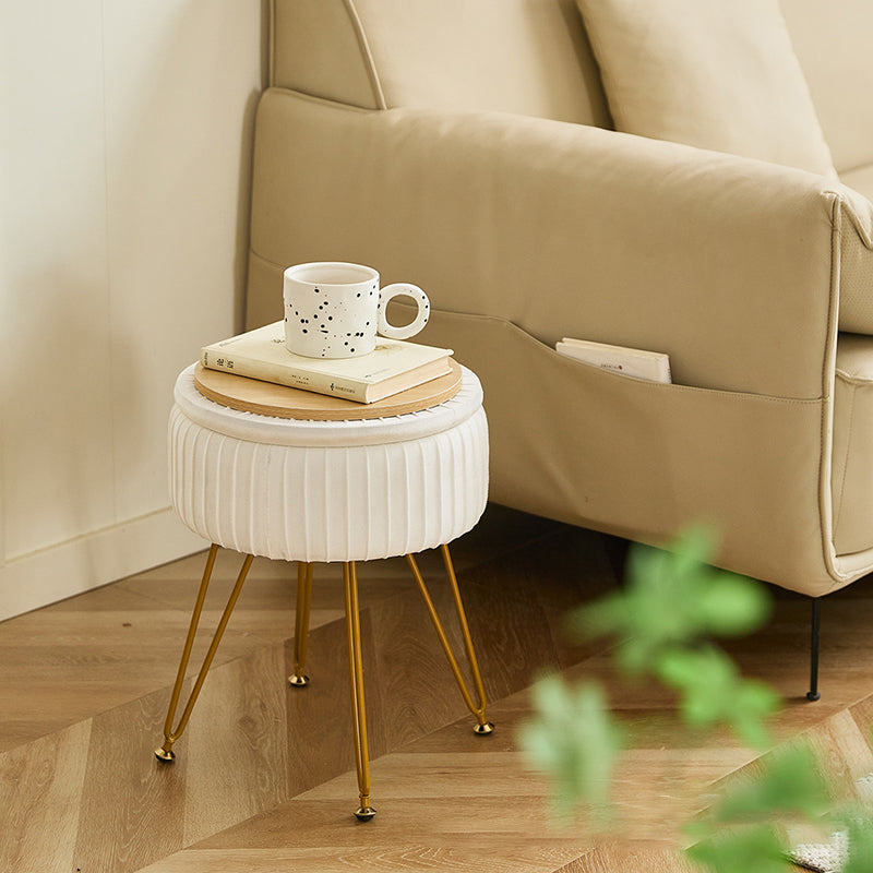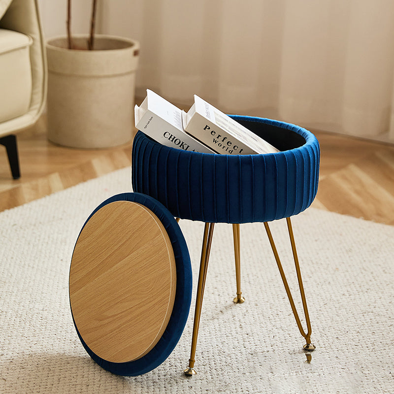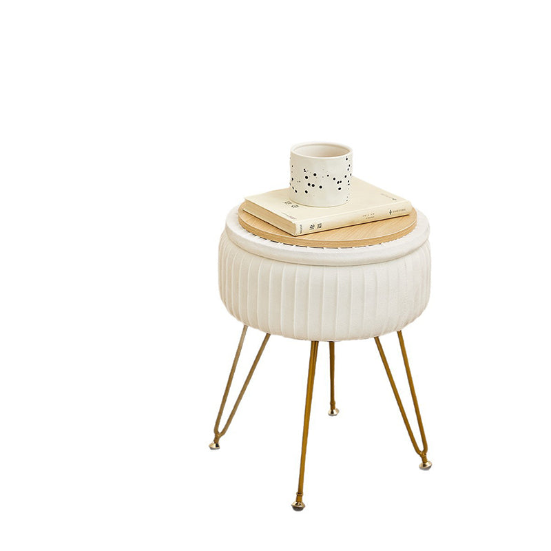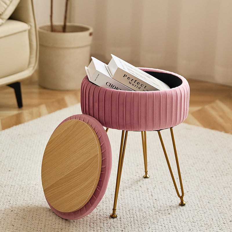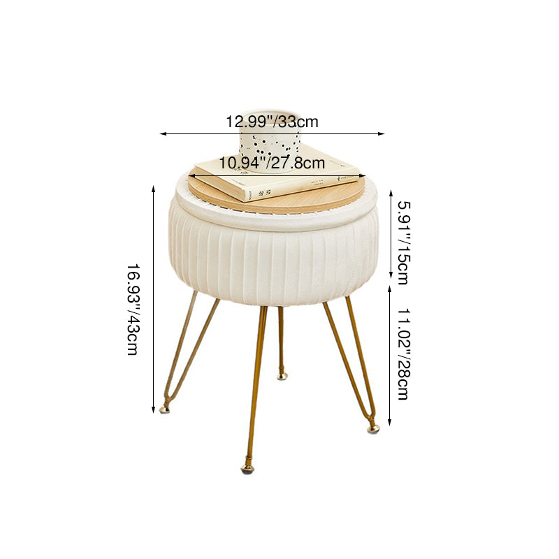 Upholstered in soft velvet and filled with high-density sponge, this Contemporary Nordic round vanity stool offers exceptional comfort. Featuring a sturdy MDF seat (crack-resistant), stable iron frame, and 1 hidden storage compartment, it comes in beige, black, light gray, pink, and blue---perfect for living rooms and bedrooms.
