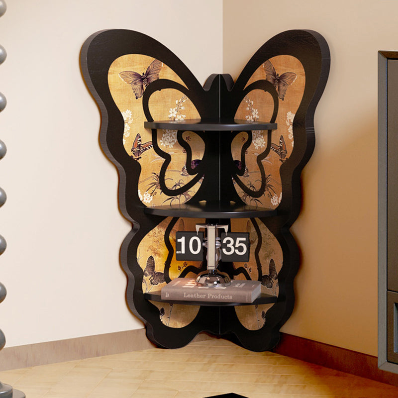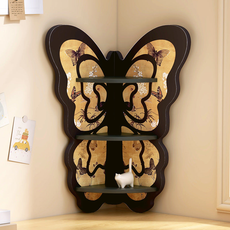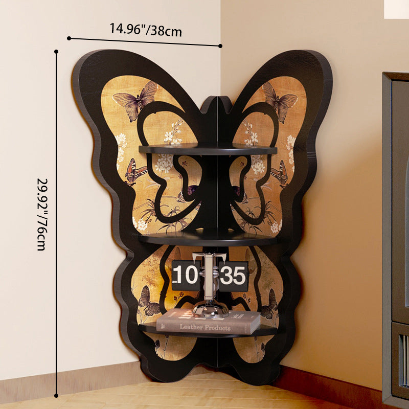 Modern Art Deco Fan-shaped Butterfly Solid Wood Corner Shelf Unit 3-Tier For Living Room