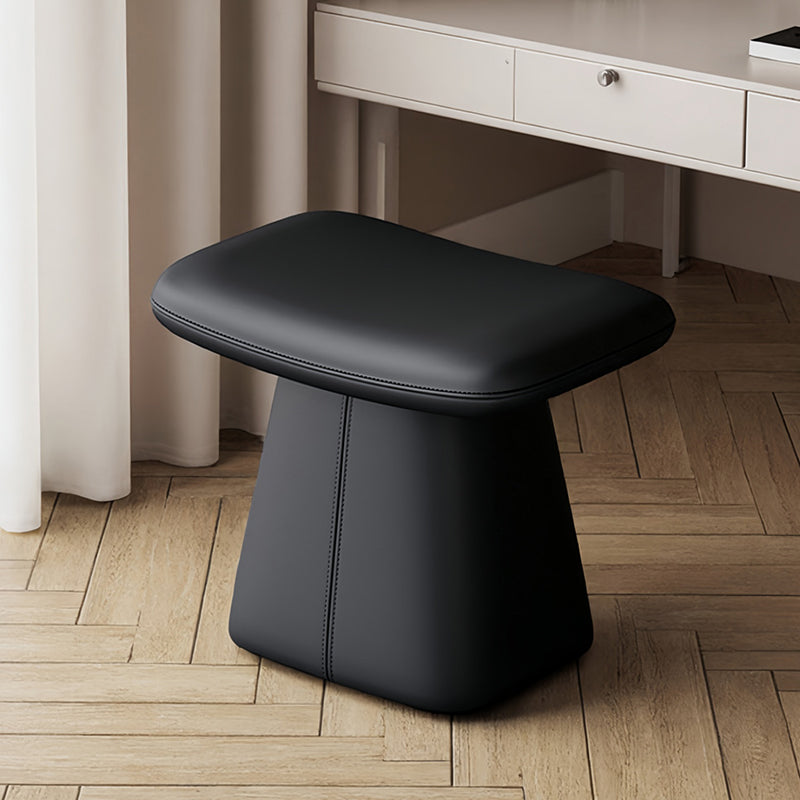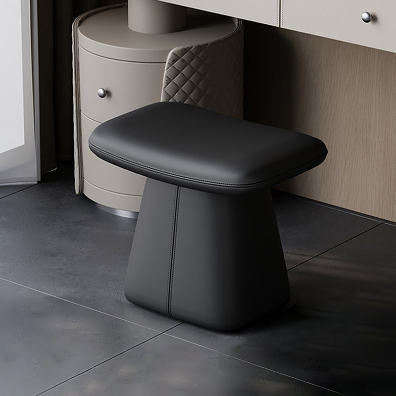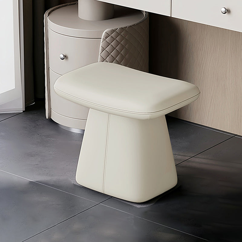 Upgrade your bedroom with this modern luxury swivel vanity stool, crafted from solid wood, top grain leather, and high-density 45D foam for lasting comfort. The soft upholstered seat with rounded rectangular design offers a refined look, available in cream white, black, and dark gray, perfect for stylish bedroom vanity setups.