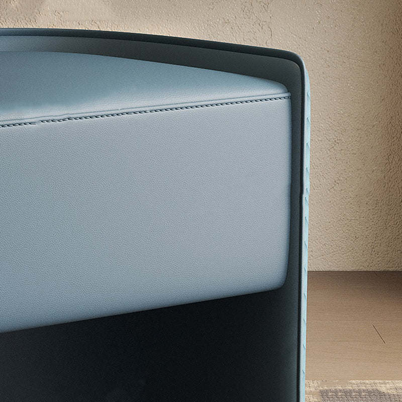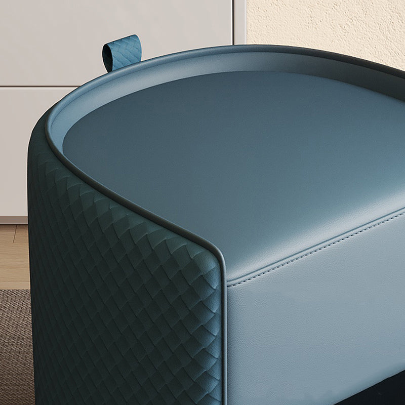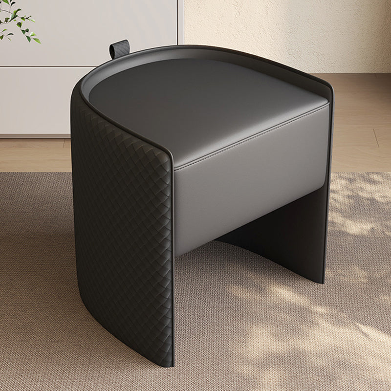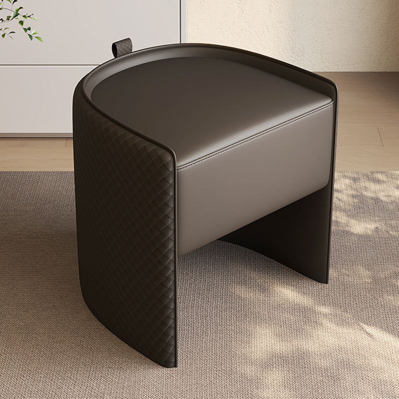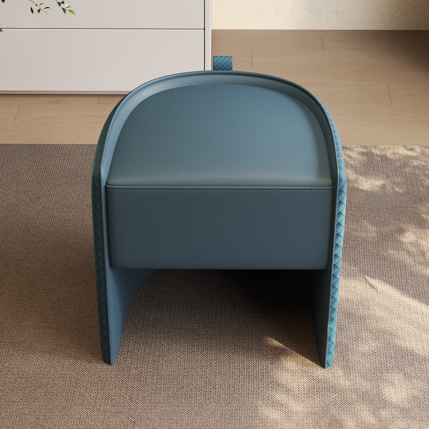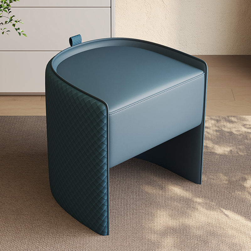 Tabouret de coiffeuse moderne en bois massif, cuir et contreplaqué avec base flottante et poignée pour chambre