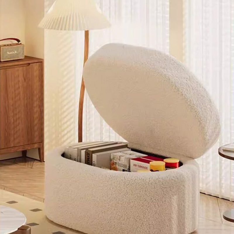 This modern minimalist oval storage stool features a solid wood frame with MDF construction, offering one hidden storage storage for everyday essentials. Finished in classic white or black, it’s ideal for entryways, serving as a compact shoe bench and stylish accent stool that blends clean design with practical storage.