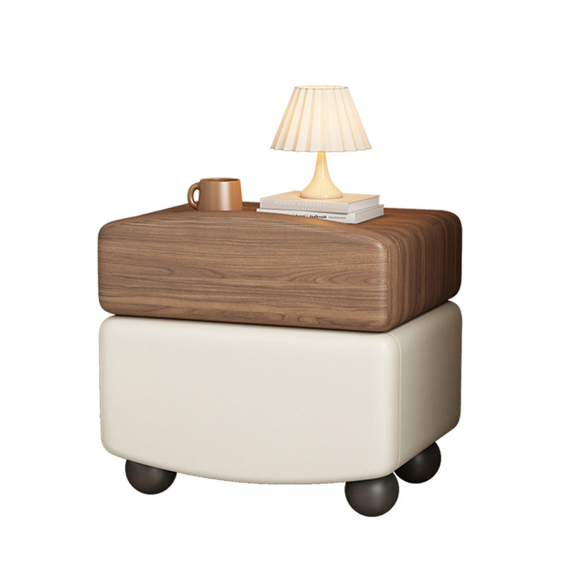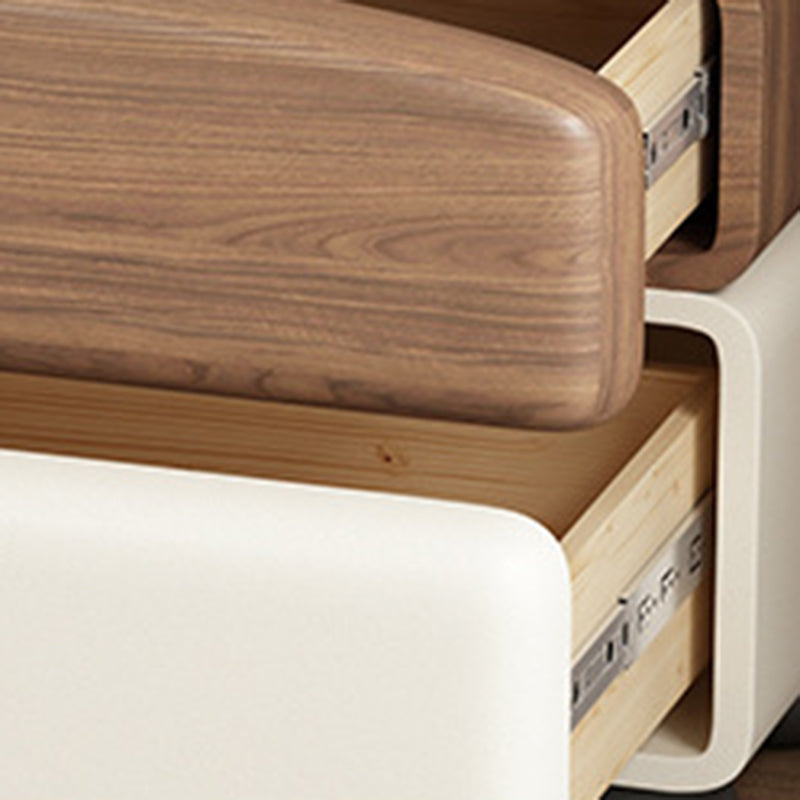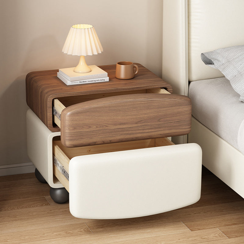 The nightstand offers practical organization via two smooth-glide drawers and a multi-layer organization capacity, all while maintaining safety with thoughtful rounded corners.
