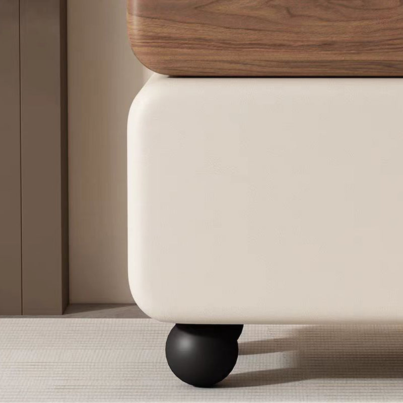 Crafted from premium solid wood, the structure provides strong load-bearing performance and is detailed with subtle carbon steel accents and tactile soft cat-paw leather handles.