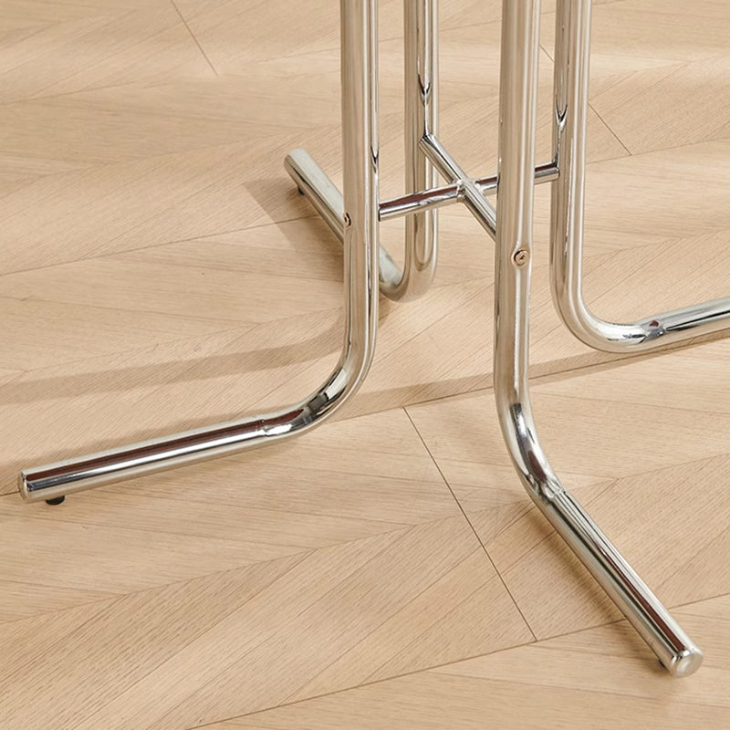 Introduce striking modern geometry and space-saving efficiency with this sleek round dining table. The tabletop is crafted from durable birch plywood, offering a smooth, resilient surface that is perfect for daily use. The table is grounded by a sturdy iron frame, featuring unique L-shaped legs that are engineered to provide exceptional stability and excellent weight support while maintaining a bold, contemporary minimalist aesthetic.