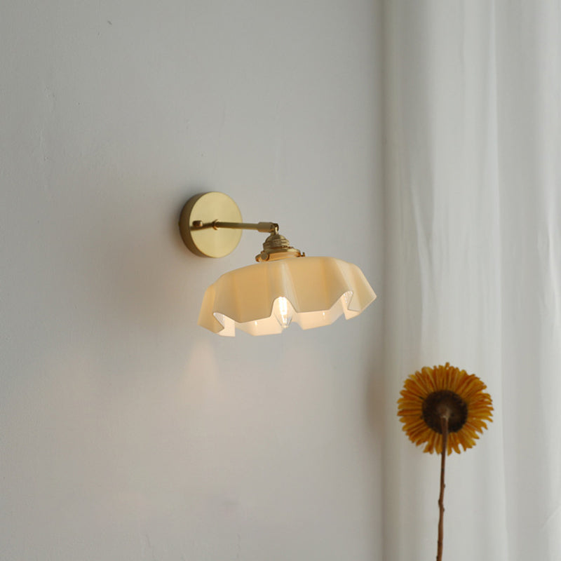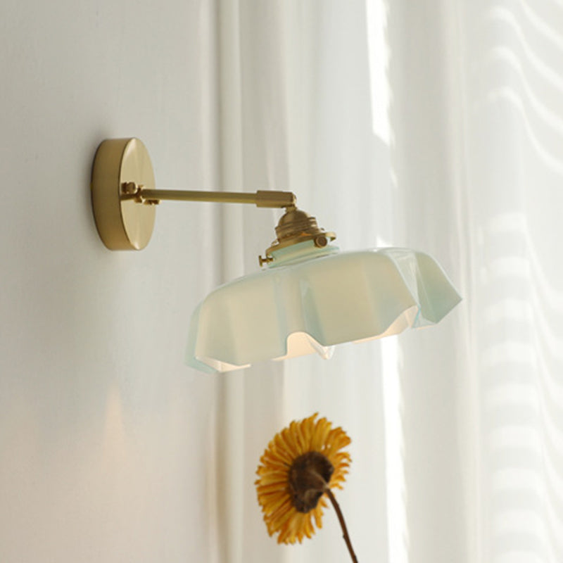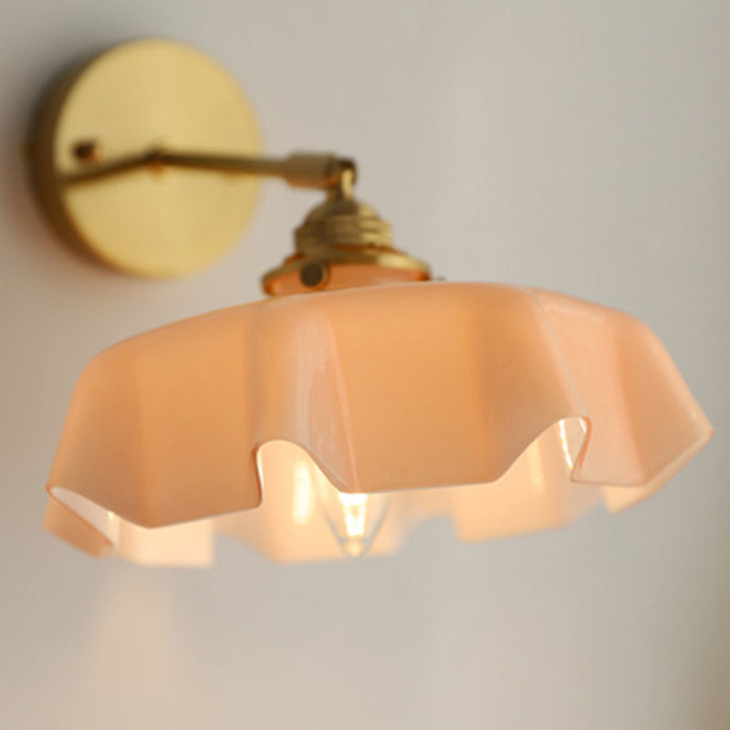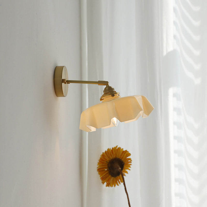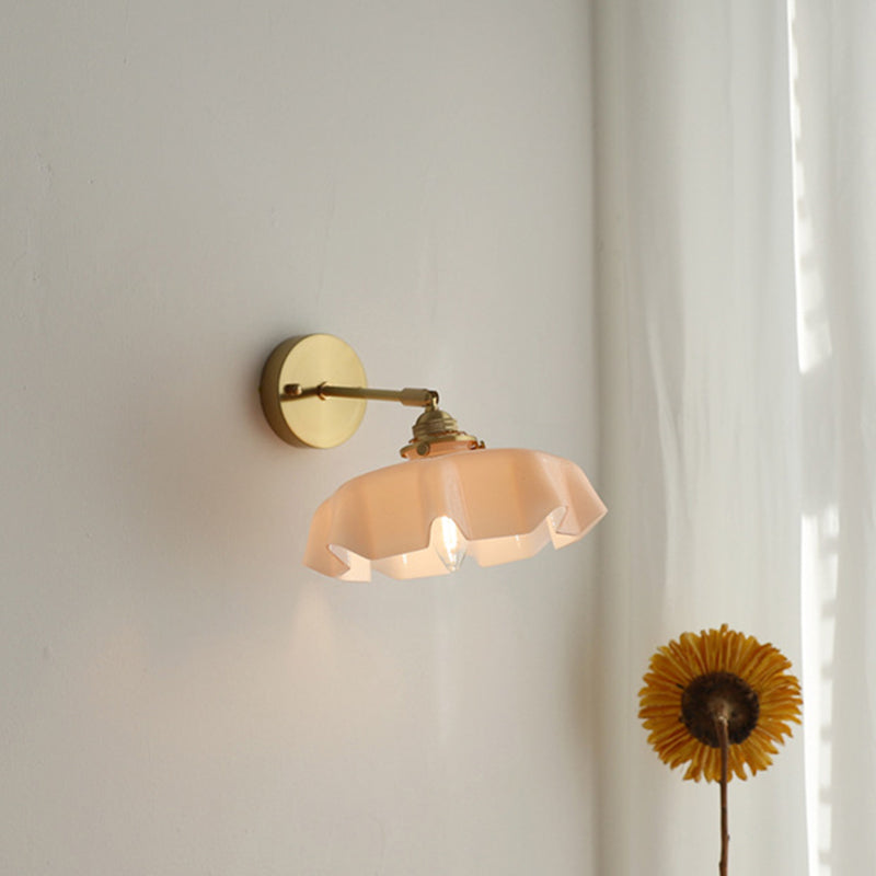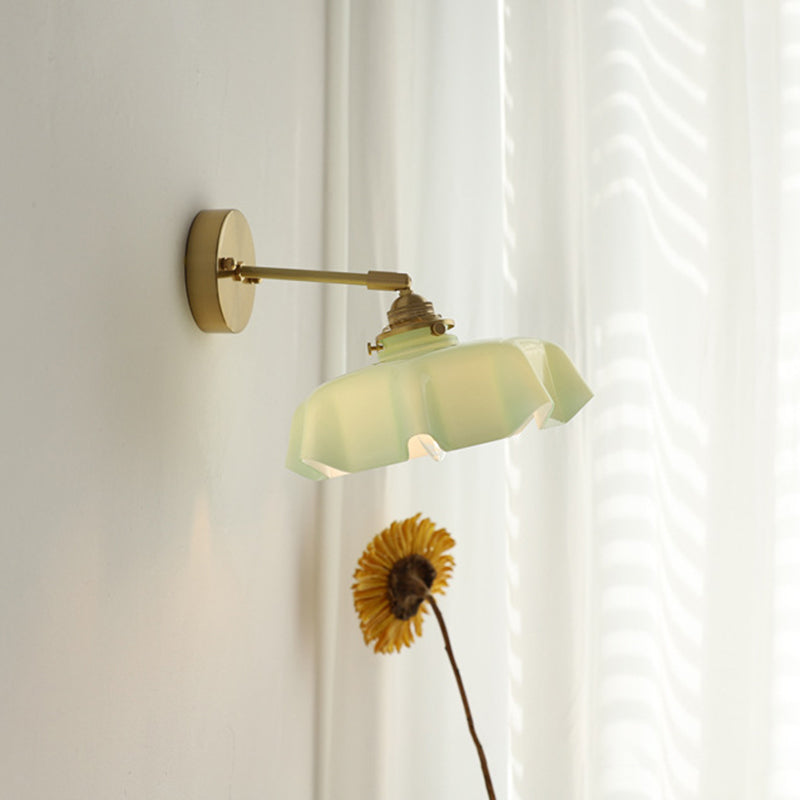 The soft, wavy edges of the ruffled glass shade mimic the movement of silk, casting a gentle, glare-free glow that transforms your room instantly. Whether you are looking to create a cozy reading corner with the adjustable corded version or add symmetry to your bedroom with the fixed arm sconce, this versatile piece fits effortlessly.