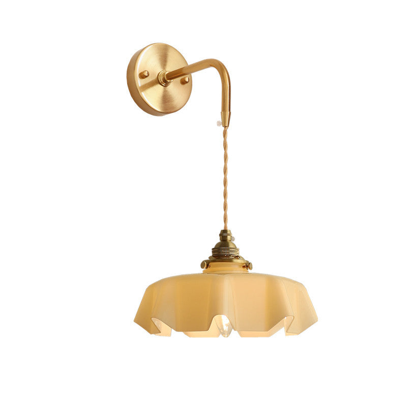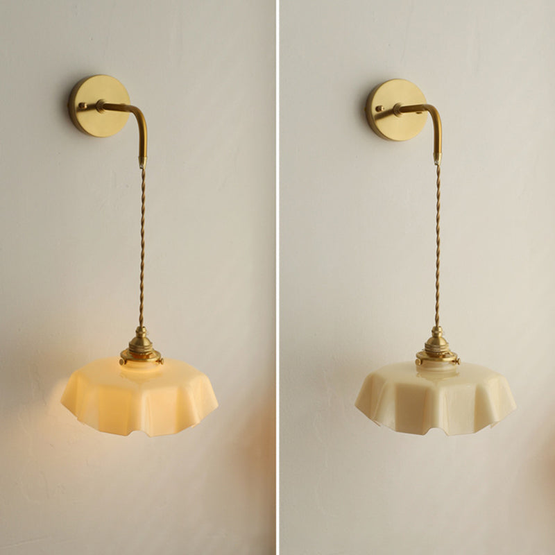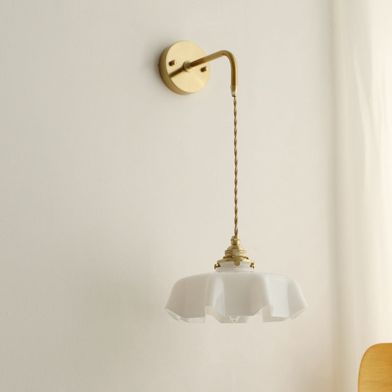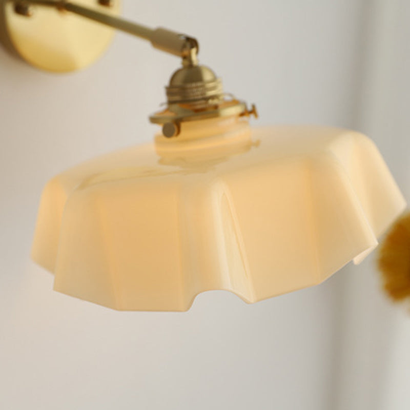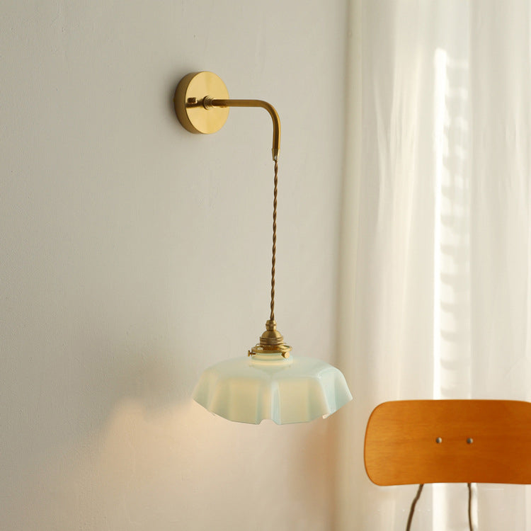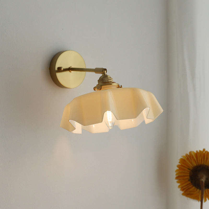 The soft, wavy edges of the ruffled glass shade mimic the movement of silk, casting a gentle, glare-free glow that transforms your room instantly. Whether you are looking to create a cozy reading corner with the adjustable corded version or add symmetry to your bedroom with the fixed arm sconce, this versatile piece fits effortlessly.