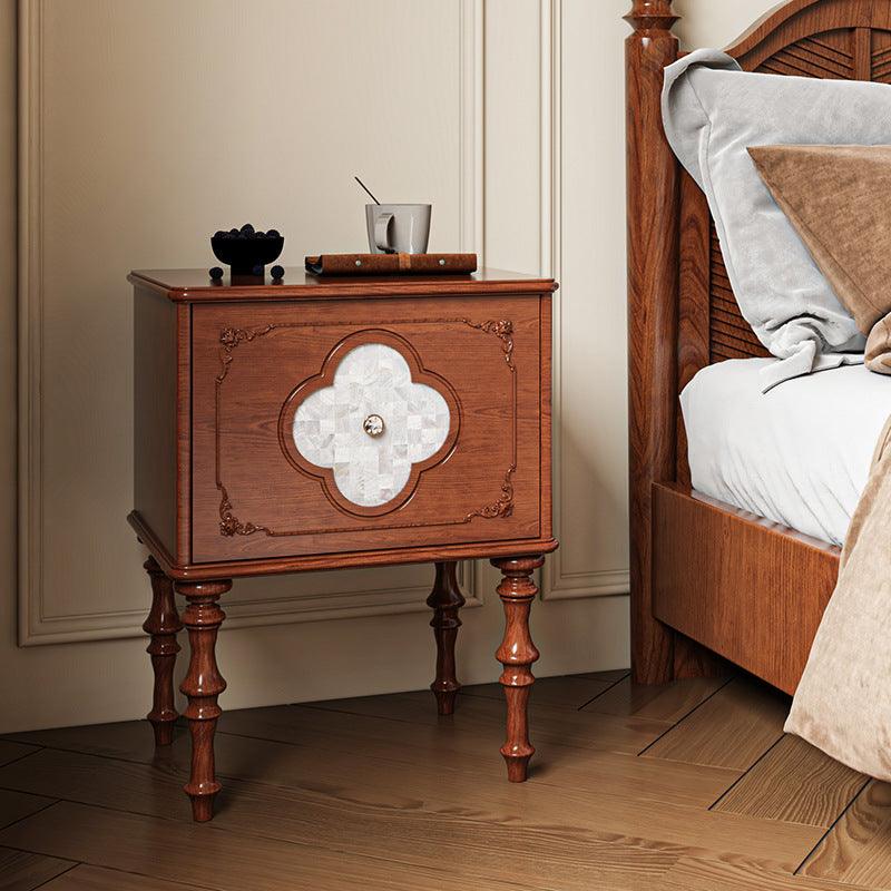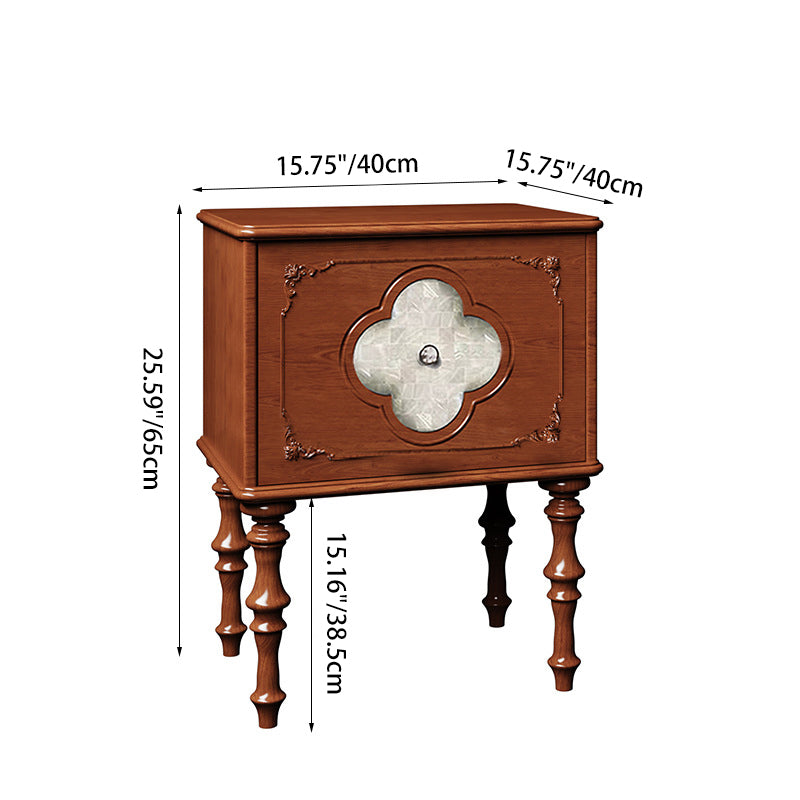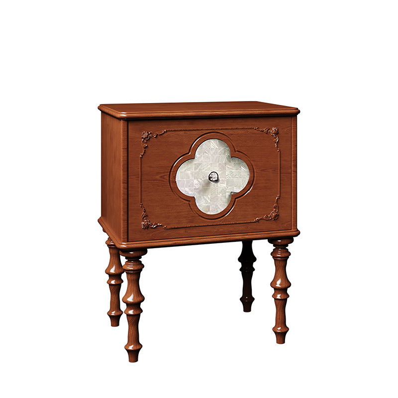 Traditional French Square Ash Wood Solid Wood Plywood Pine Wood Nightstand 1-Drawer For Bedroom