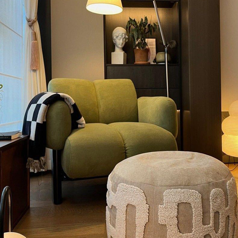 Blending timeless charm with modern ergonomics, this traditional retro armchair features a comfortable curved design and a highly supportive backrest and armrests. It is beautifully upholstered in breathable cotton-linen fabric, offering a tactile softness available in sophisticated green, versatile light grey, and classic white. Designed to be the perfect accent piece, it brings a blend of refined style and unmatched comfort to living rooms, balconies, or any cozy home corner.