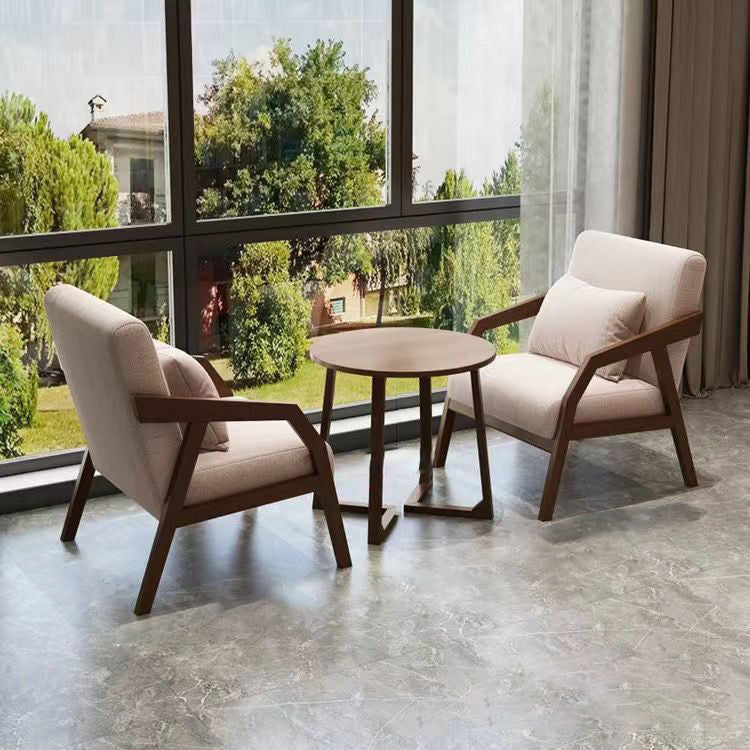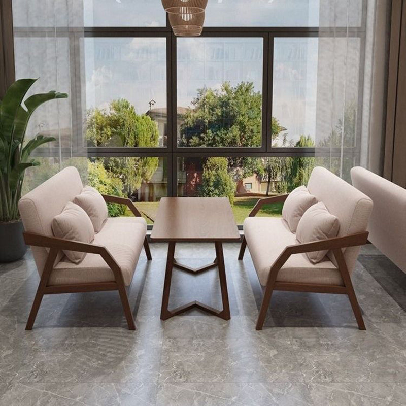 This traditional vintage sofa combines soft fabric upholstery with a sturdy rubberwood frame, offering lasting comfort and stability. Designed with a curved rectangular silhouette, it features supportive backrest and armrests, available in classic beige for an elegant and cozy living room setup.