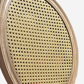 Blending rattan, solid wood, and soft upholstery, this dining chair showcases an oval–trapezoid profile with a supportive backrest for lasting comfort. Its light gray finish, high wear resistance, and sturdy frame deliver vintage charm and reliable strength, perfect for dining rooms, cafés, or farmhouse-inspired spaces.
