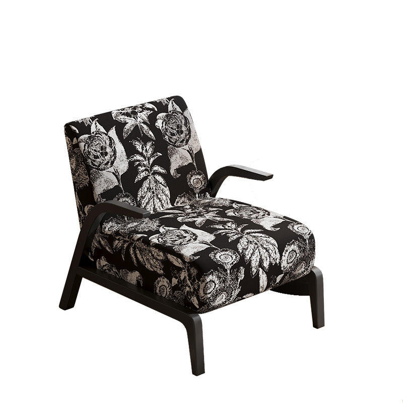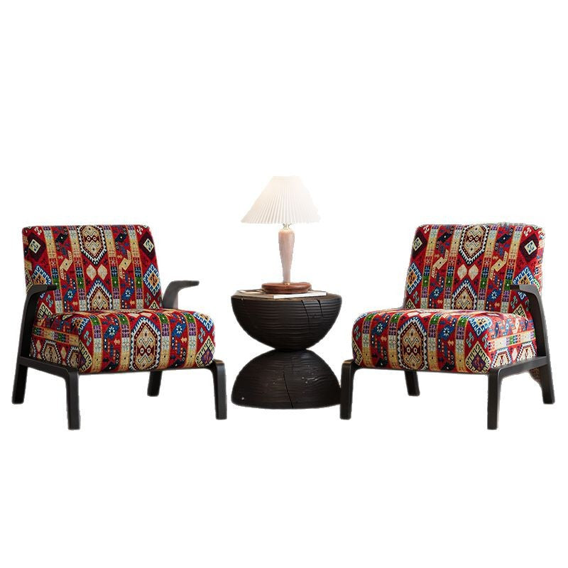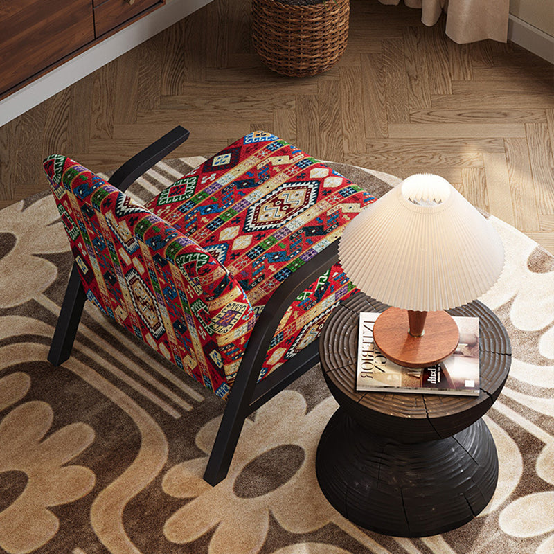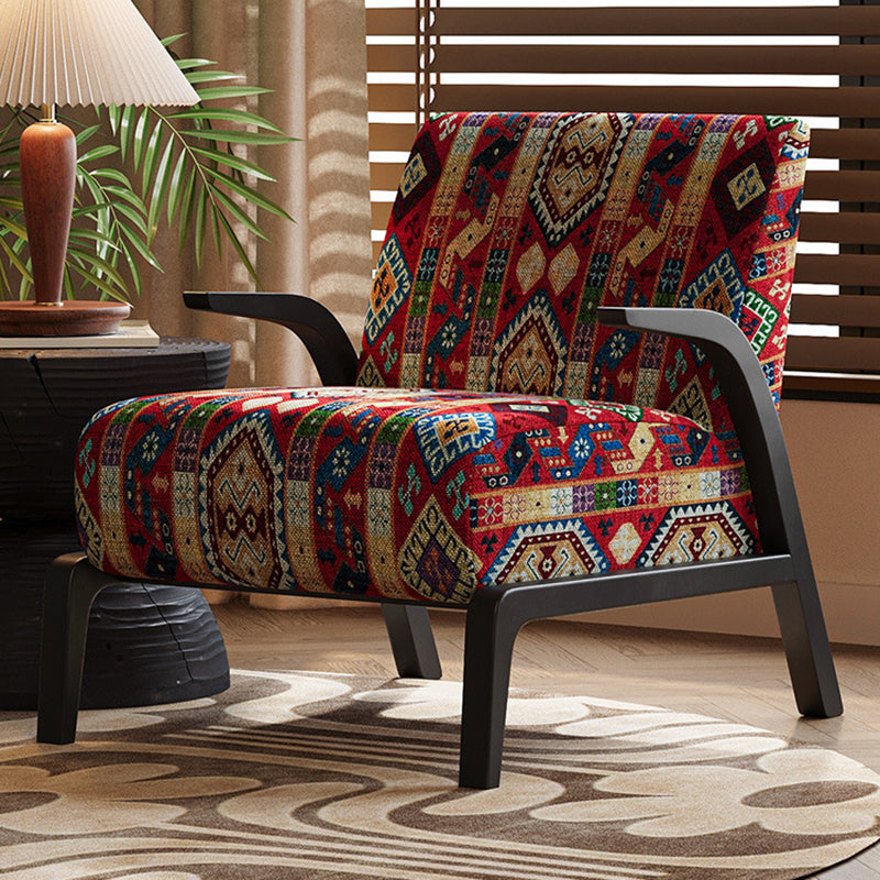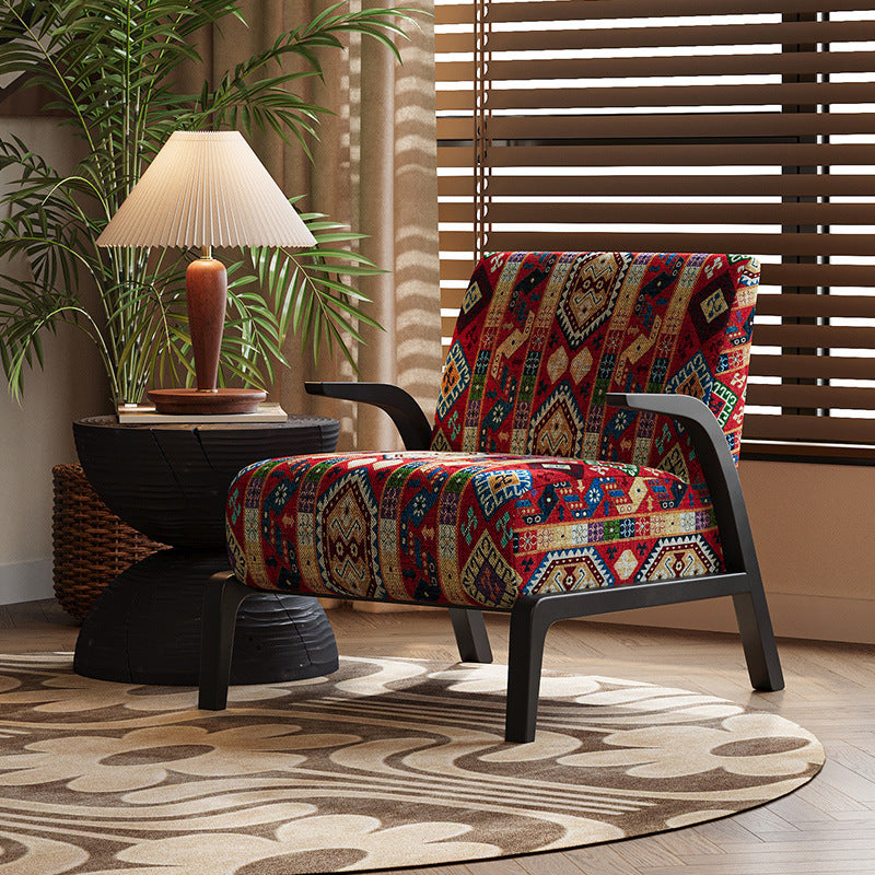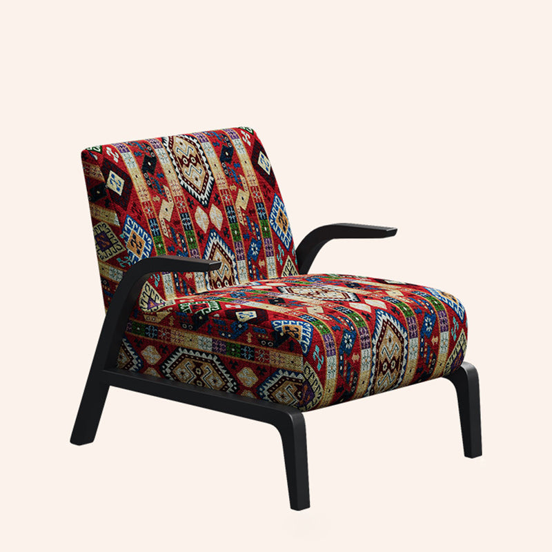 Traditional Vintage Rectangular Jacquard Fabric Solid Wood Accent Chair Backrest Armrest For Living Room