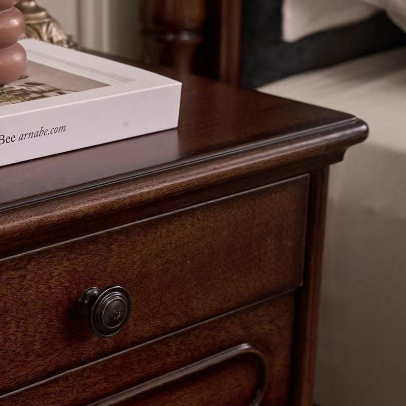Elevate your bedroom with this traditional vintage nightstand, showcasing a classic rectangular profile that brings enduring elegance to any timeless interior.