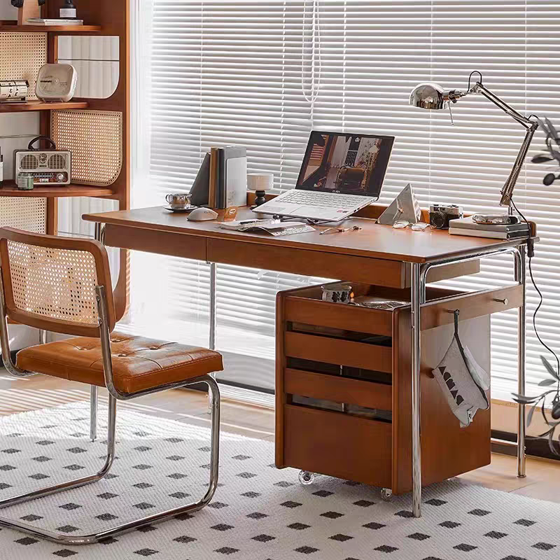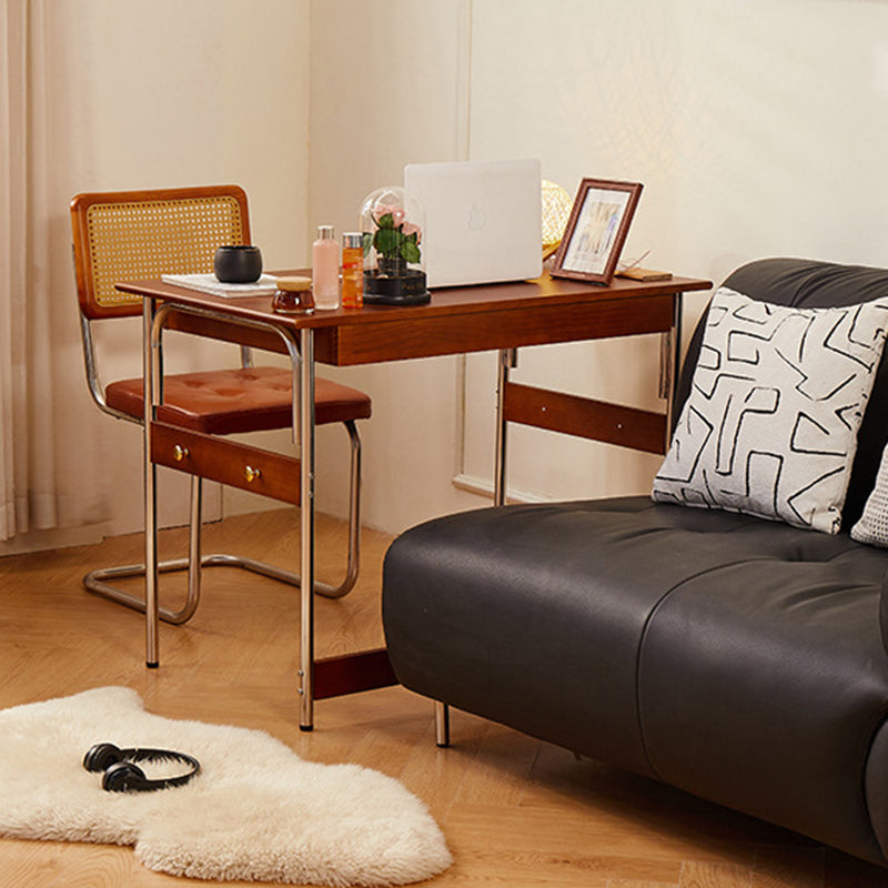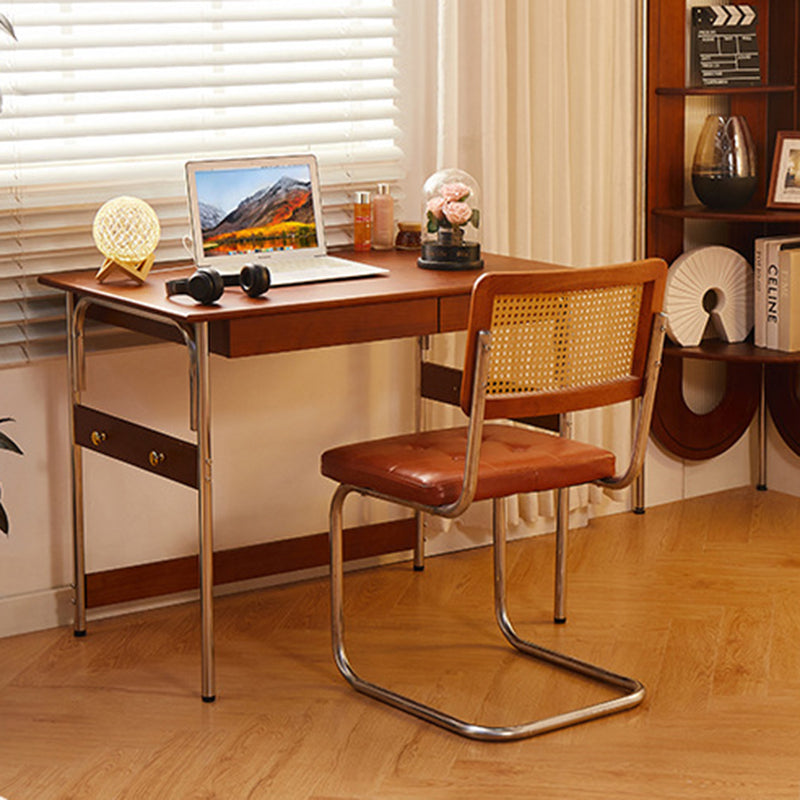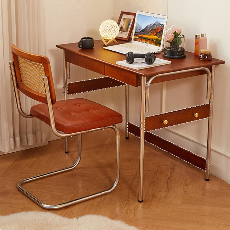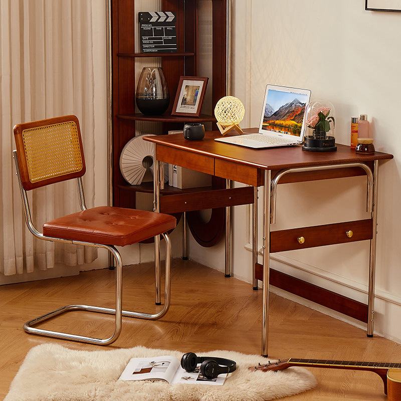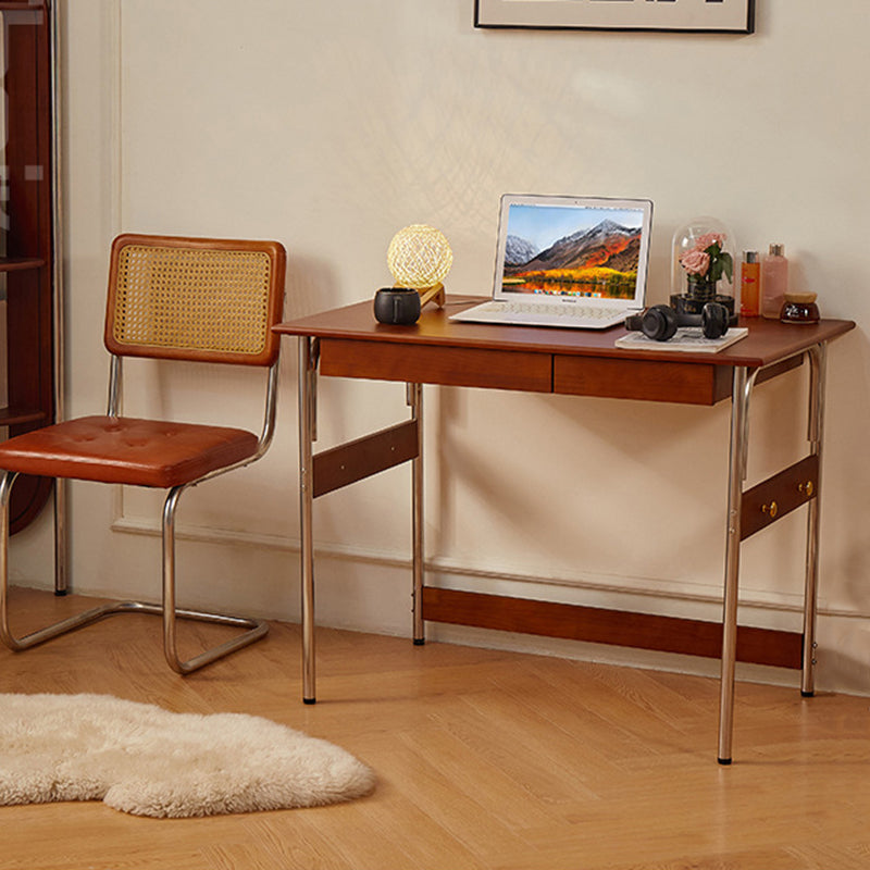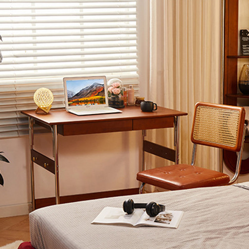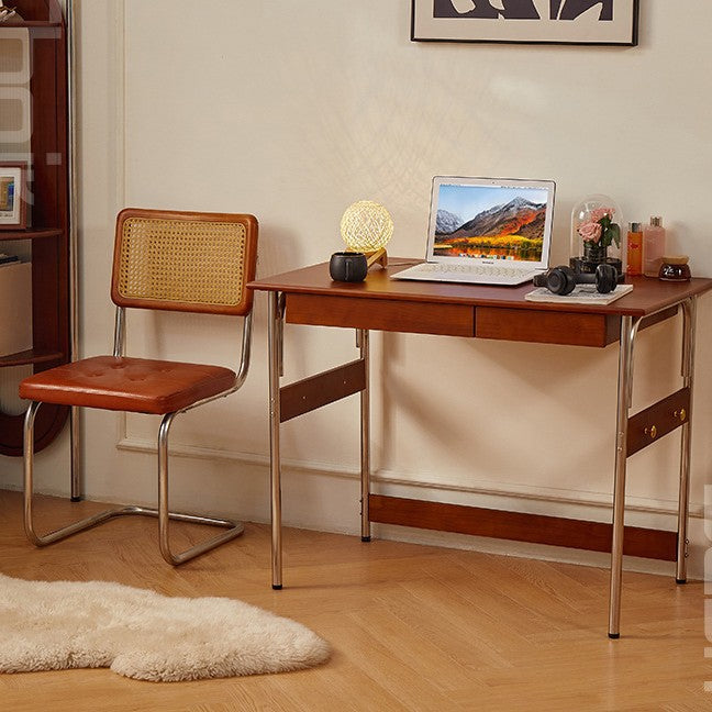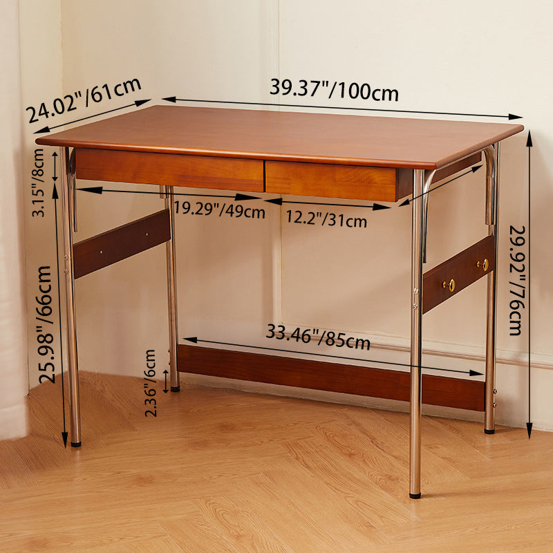 Traditional Vintage Rectangular Solid Wood Stainless Steel Desk 2-Drawer For Study