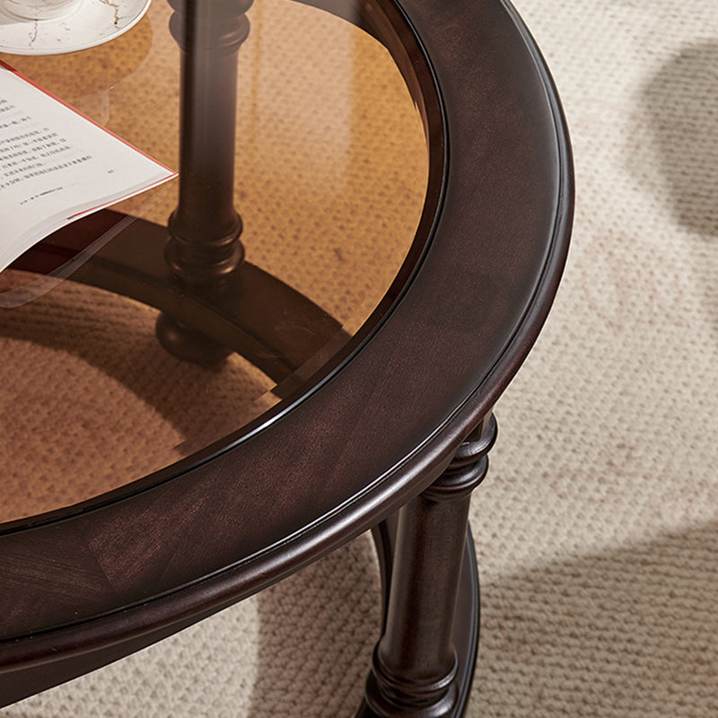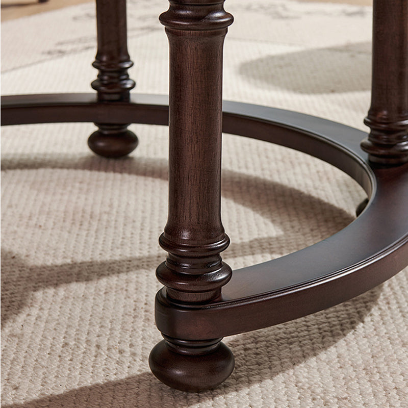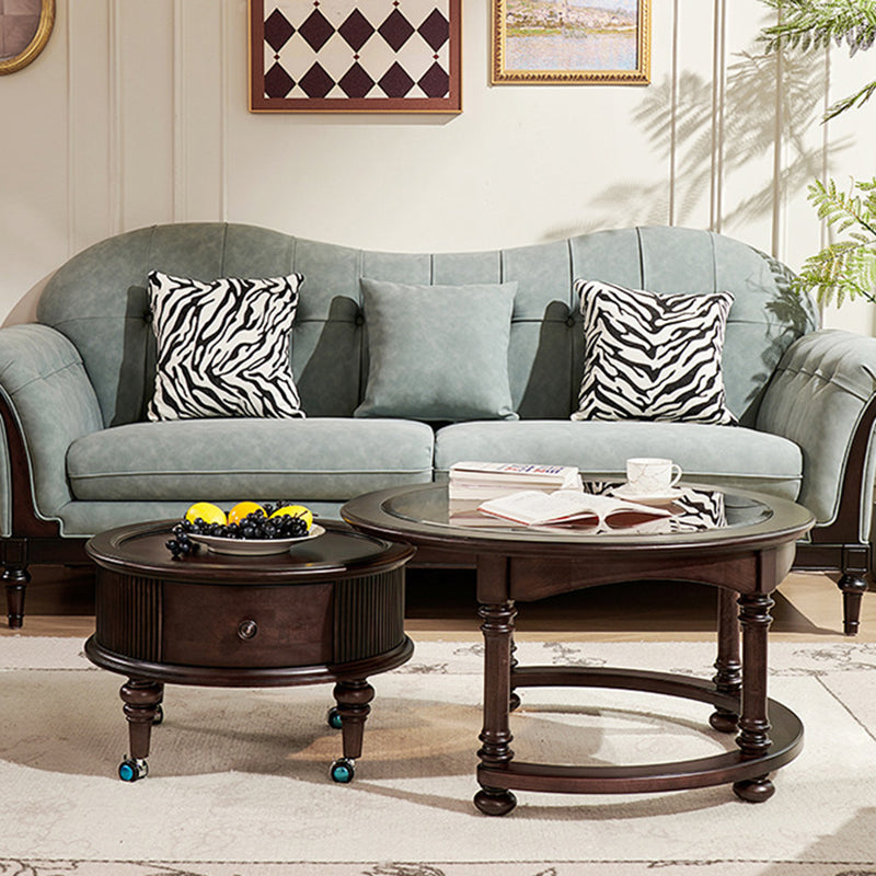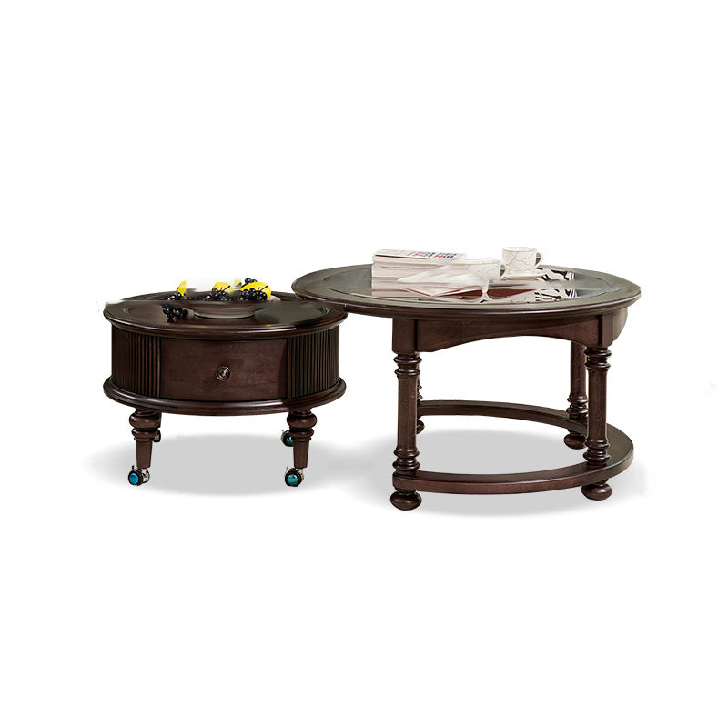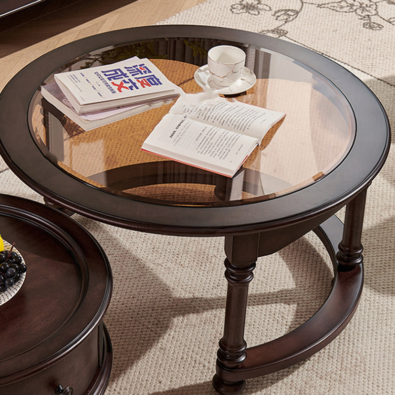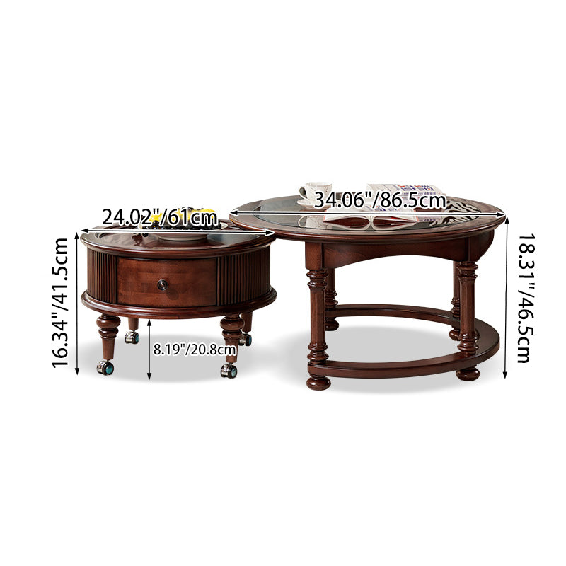 Capture the sophisticated allure of a vintage manor with this French and American-inspired round coffee table set. Masterfully constructed with a solid wood frame, this piece features a premium tempered glass top that adds a layer of modern clarity to its classic silhouette. The design is as functional as it is beautiful, featuring two built-in drawers that provide "convenient storage" for remotes, magazines, and essentials, keeping your living space clutter-free while maintaining a refined, antique-inspired aesthetic.