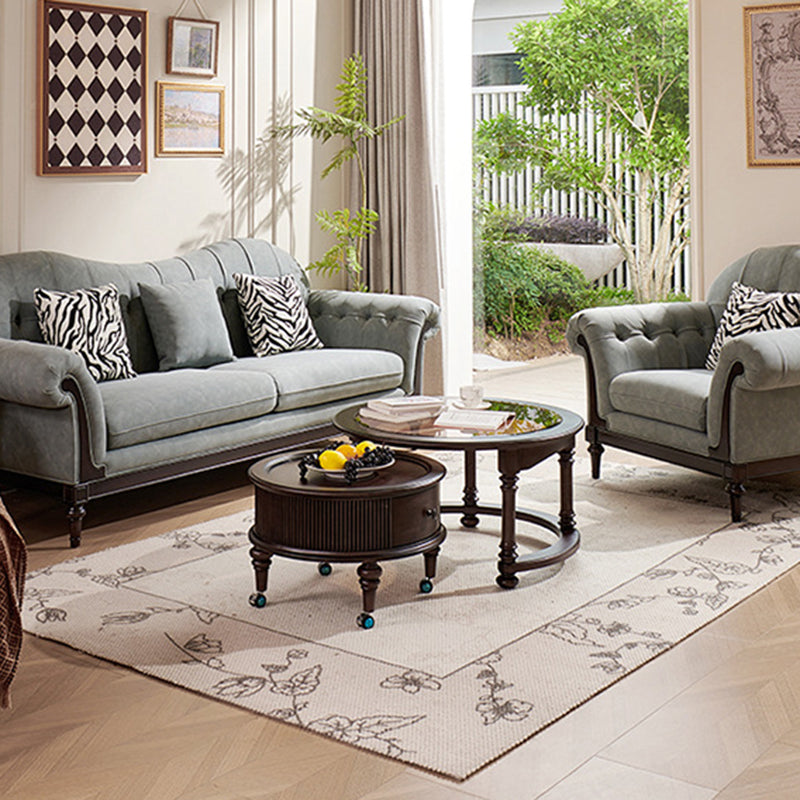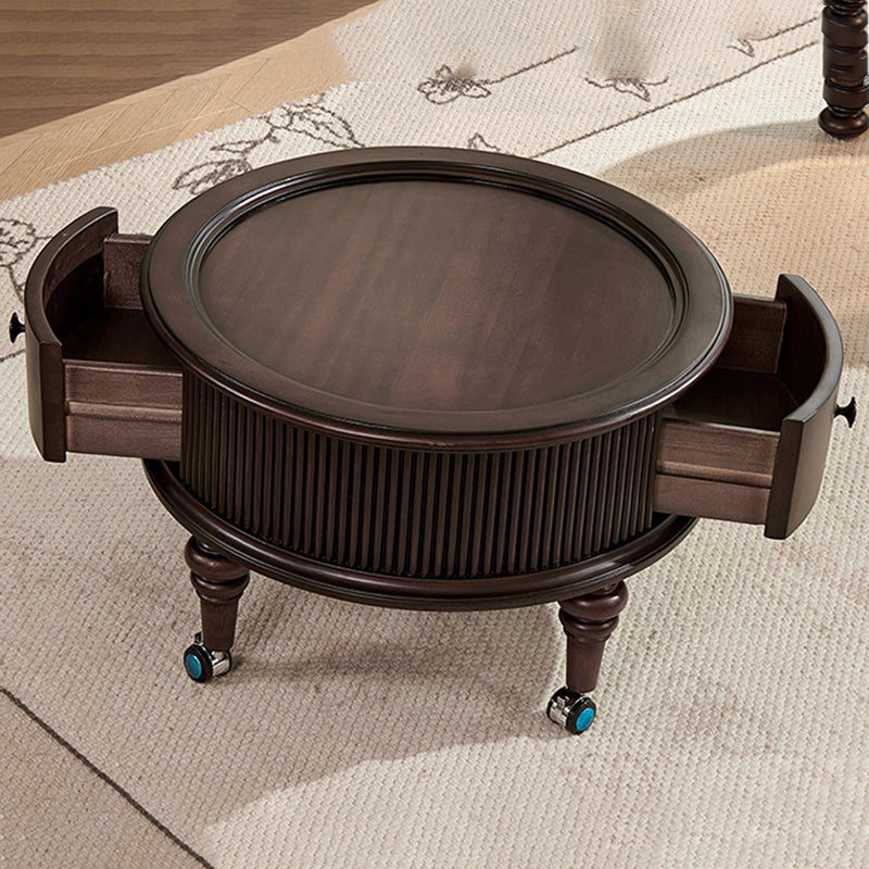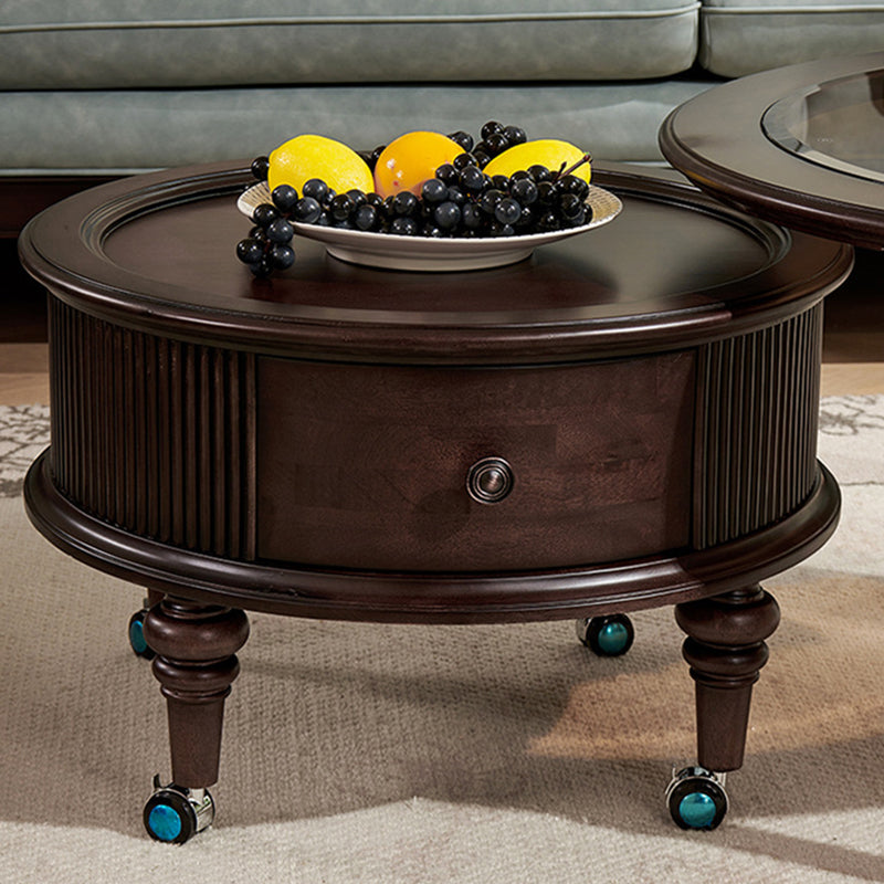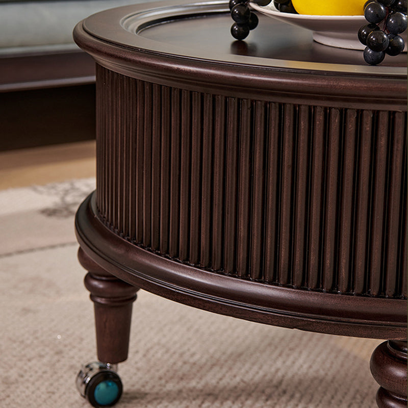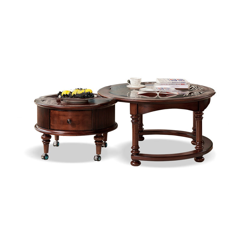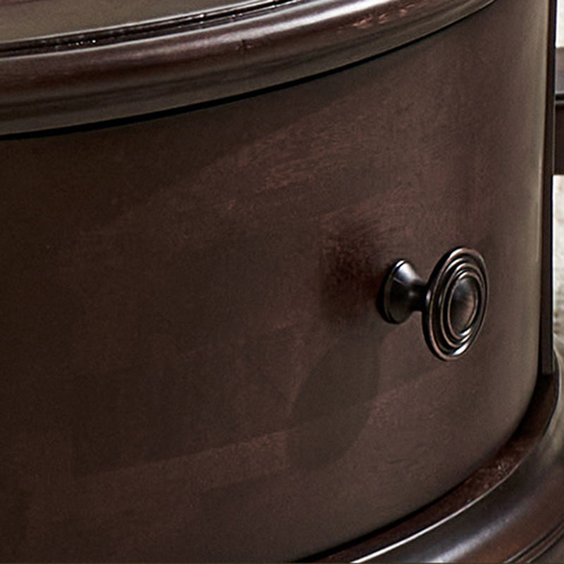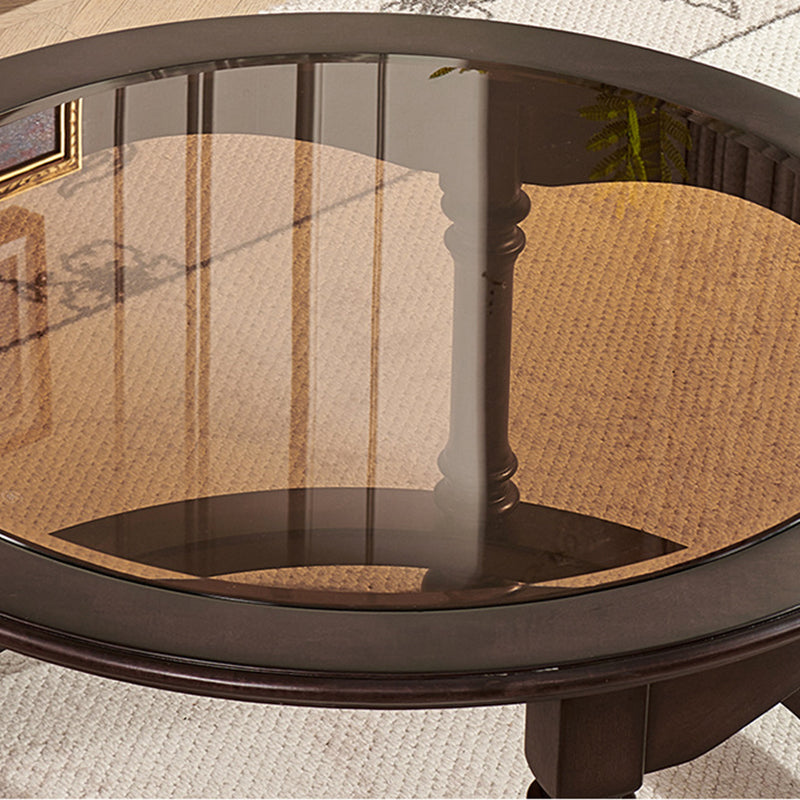 Capture the sophisticated allure of a vintage manor with this French and American-inspired round coffee table set. Masterfully constructed with a solid wood frame, this piece features a premium tempered glass top that adds a layer of modern clarity to its classic silhouette. The design is as functional as it is beautiful, featuring two built-in drawers that provide "convenient storage" for remotes, magazines, and essentials, keeping your living space clutter-free while maintaining a refined, antique-inspired aesthetic.