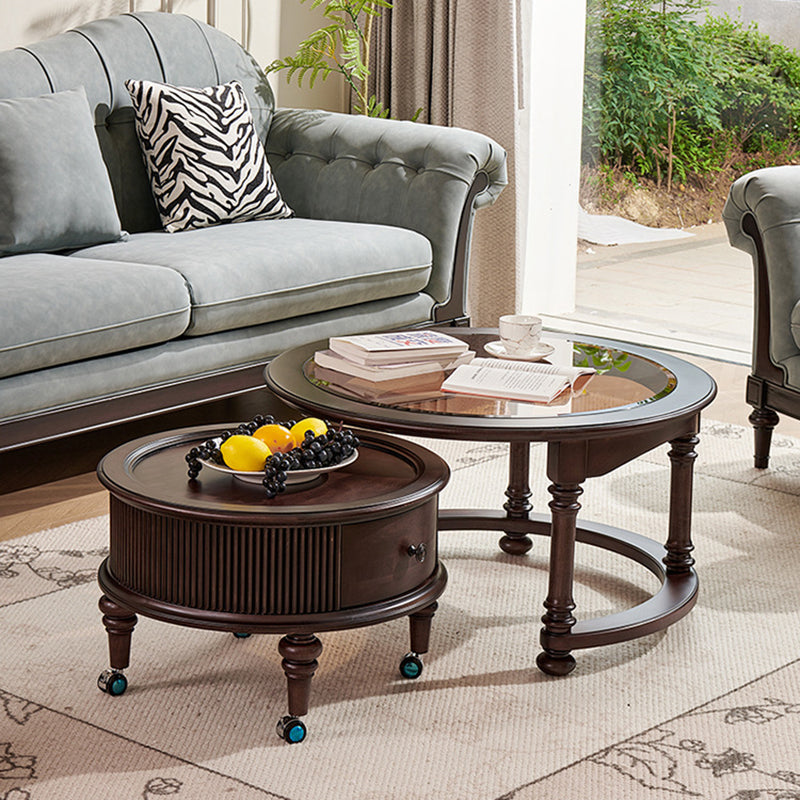 Designed for the ultimate in "versatile living," this modular set can be styled together as a tiered centerpiece or used separately as individual accent tables to suit your layout. Available in a moody Smoked Wood or a rich Cherry tone, it effortlessly adapts to both "small and large living rooms," offering a high-end focal point that bridges the gap between traditional craftsmanship and contemporary utility. Optimized for North American consumers searching for round glass-top coffee tables with storage, vintage nesting table sets, solid wood coffee tables with drawers, and French country living room furniture.