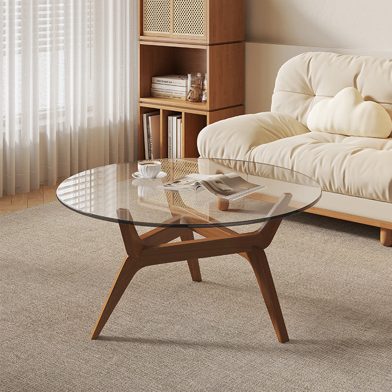 Anchor your living space with the timeless appeal of this traditional vintage round coffee table, a piece that combines classic design with robust modern engineering. The expansive tabletop is crafted from durable, easy-to-clean tempered glass, providing a wide, airy surface ideal for décor and daily necessities. This elegant transparency is solidly supported by a premium solid rubberwood base, guaranteeing excellent stability and superior load-bearing strength for long-term use.