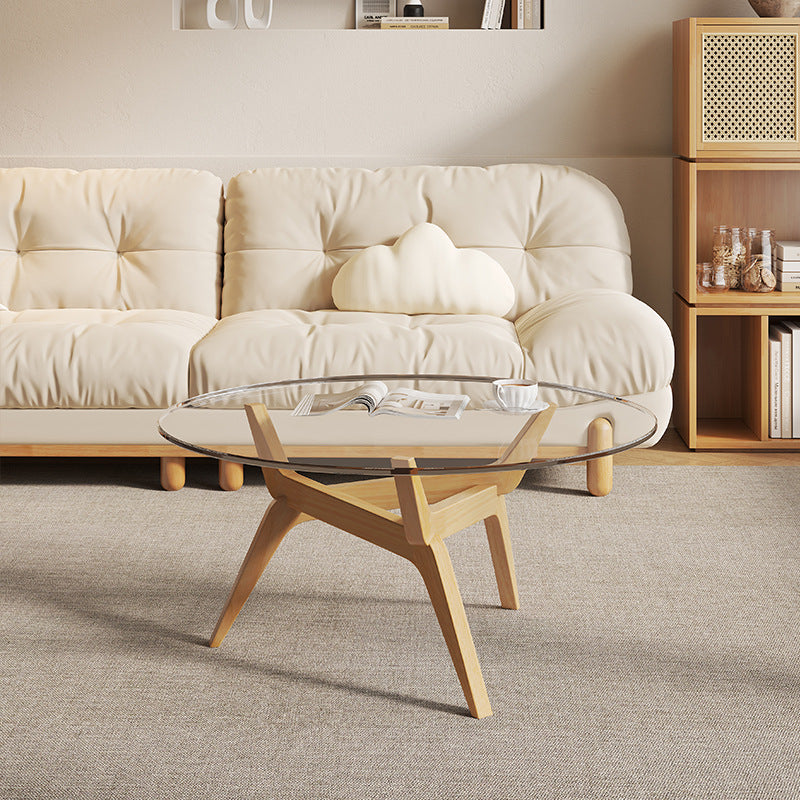 The foundation is visually striking, featuring a sturdy triangular support design that adds a sophisticated architectural element while maximizing stability. Its classic round shape and medium size make it a stylish and reliable centerpiece for any generous living room or a functional anchor in a small space. Available in rich Walnut, natural wood, and sleek Black, this table offers versatility to complement any traditional or transitional interior. Optimized for North American consumers searching for vintage round coffee tables, solid rubberwood and glass tables, triangular base accent furniture, and sturdy traditional living room centerpieces.
