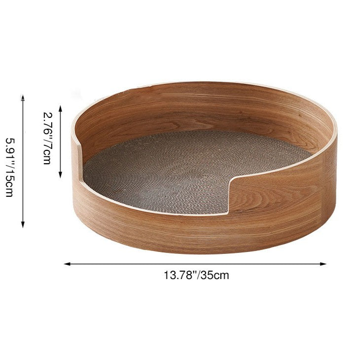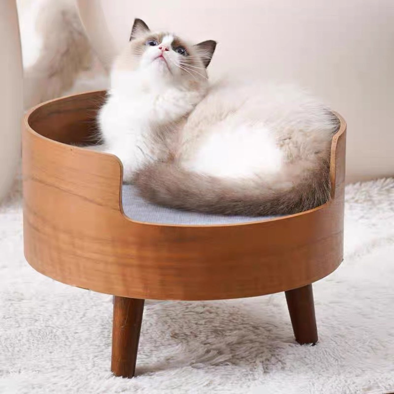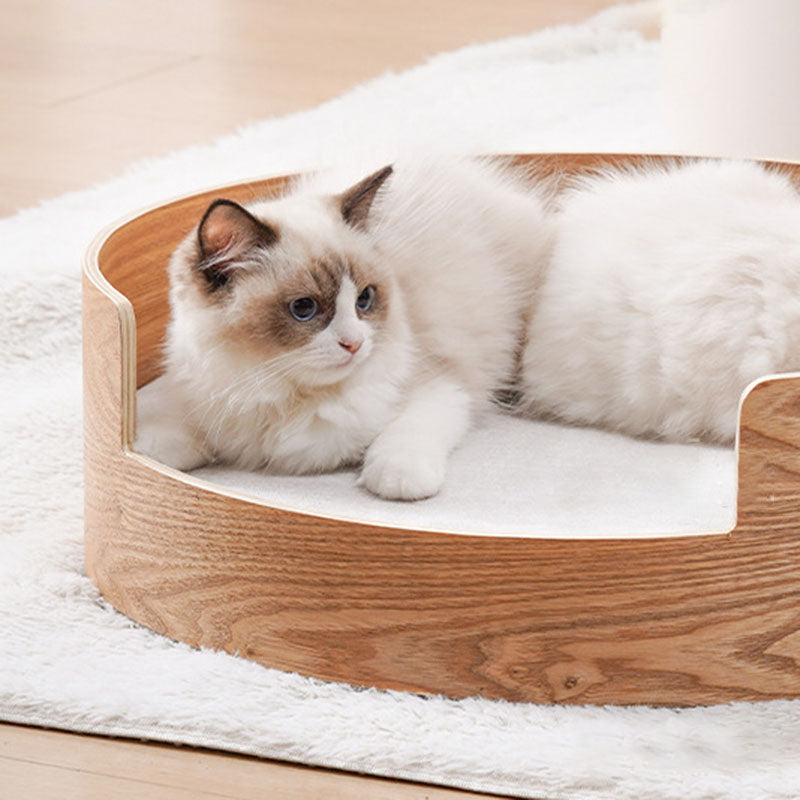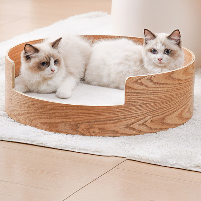 Introduce a piece of pet furniture that elevates your home décor with this elegant solid wood cat bed, a perfect blend of style and utility. Crafted from high-quality, genuine wood, the bed features a chic round design that acts as a cozy resting spot. The solid wood structure itself serves as a durable, natural cat scratch pad, helping to protect your upholstery while satisfying essential feline instincts.
