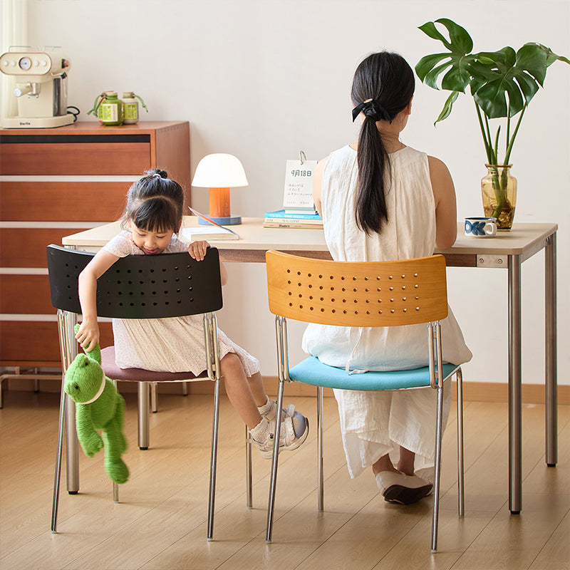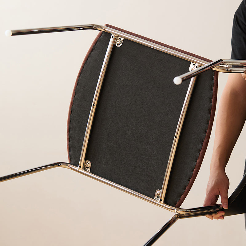 Infuse your dining area with a bold blend of retro style and modern stability with this vintage-inspired dining chair. The chair features a sophisticated multilayer wood shell with a fine beech veneer, offering a touch of classic warmth. This material is expertly paired with a sleek, sturdy plated metal frame, which not only ensures exceptional durability but also provides a chic industrial contrast to the wood and upholstery.