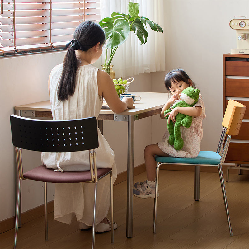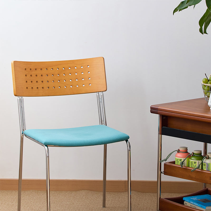 Traditional Vintage Square Iron Multi-layer Solid Wood Panel Fabric Backrest Stackable Dining Chair For Dining Room