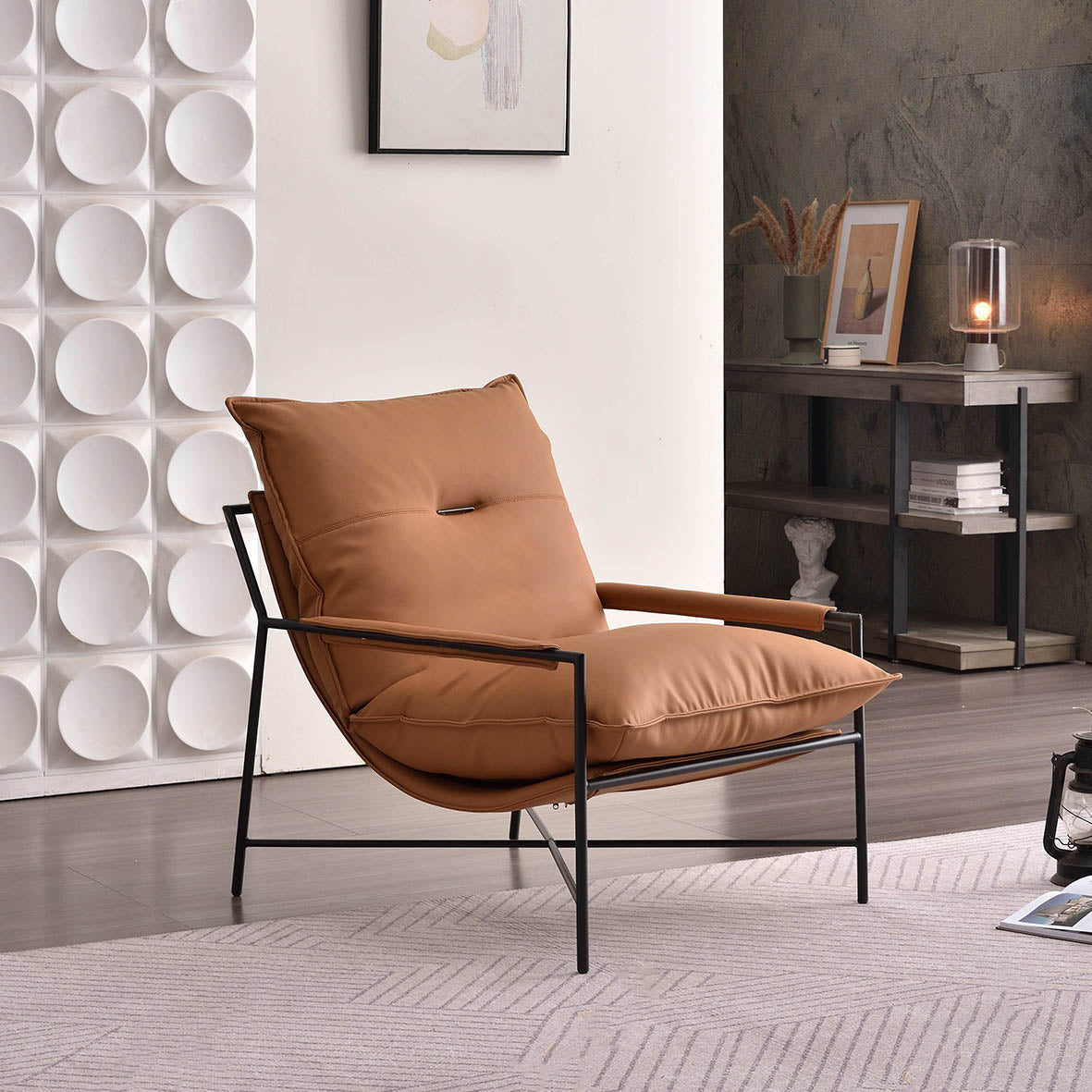 This industrial sofa chair is more than furniture---it's your cozy, functional companion. Eco-friendly faux leather acts as a durable guardian: repels dirt/scuffs, stains wipe away easily. PP cotton cushion? Soft as a shape-holding cloud, supporting you for hours. Sturdy iron legs work like solid bedrocks: bear weight effortlessly, no wobbles, lean back worry-free. Detachable design makes cleaning a breeze---easy as rearranging a shelf. Unwinding alone or hosting guests, it fits and elevates your comfort, one smart detail at a time.