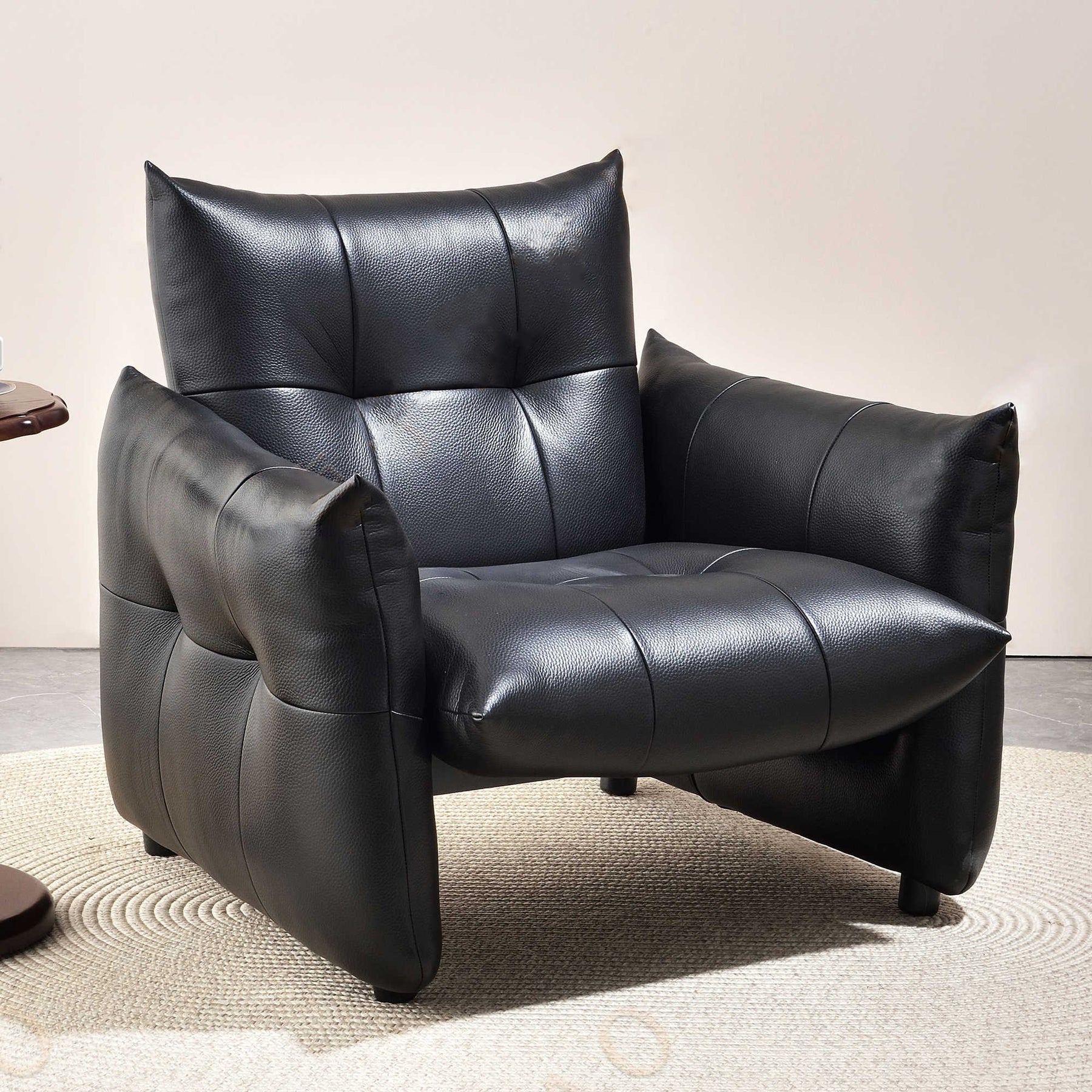 This contemporary luxury-style armchair combines minimalist design with exquisite craftsmanship, embodying modern simplicity and comfort. Available in eco-friendly leather and plush fabric, it offers distinct tactile experiences---durable and easy to clean leather, and soft, warm fabric for added coziness. The backrest and armrests are filled with AA plush cotton and down feathers, providing excellent rebound and support for ultimate comfort. Perfect for any living room, study, or bedroom, this chair enhances your space with a touch of elegance and refined taste.