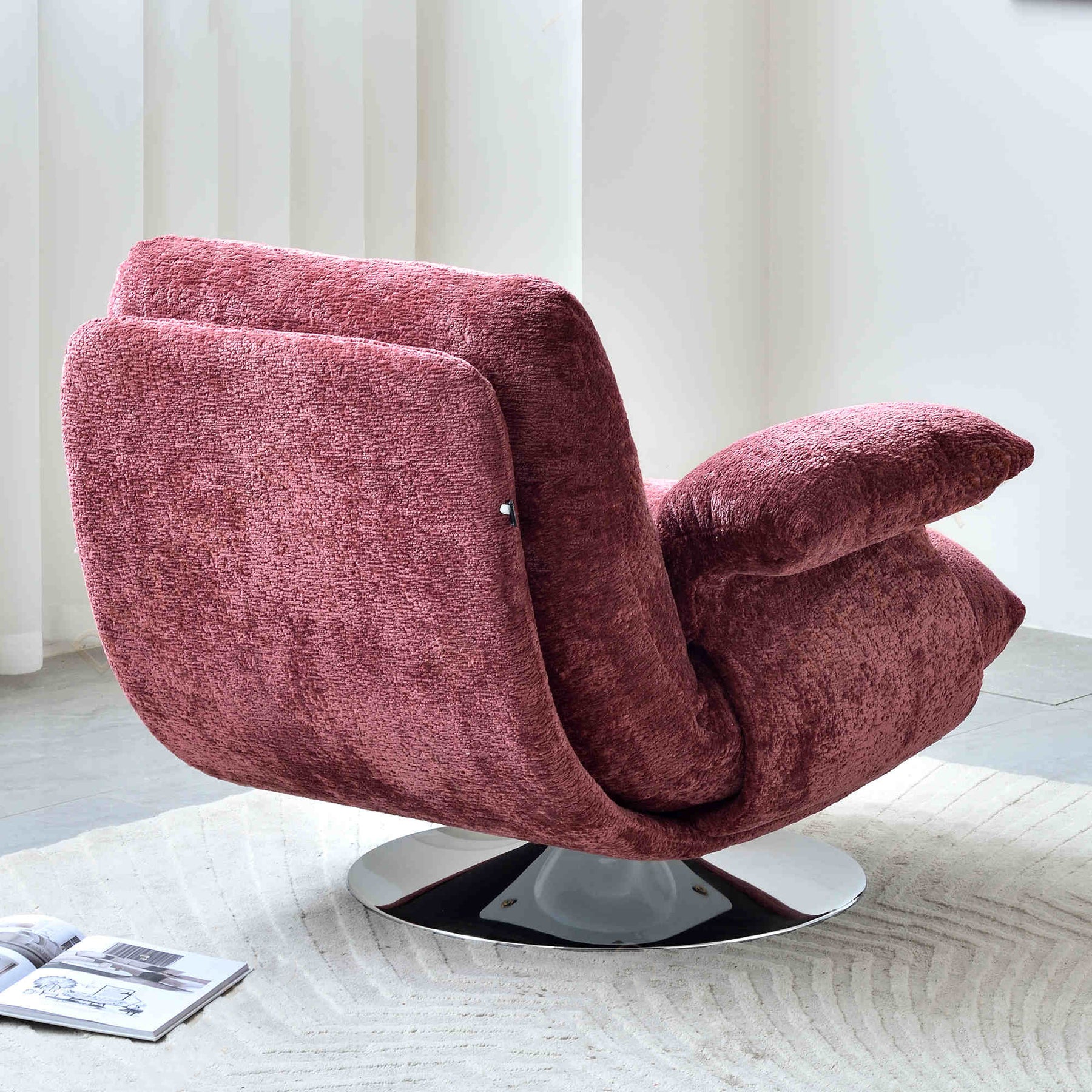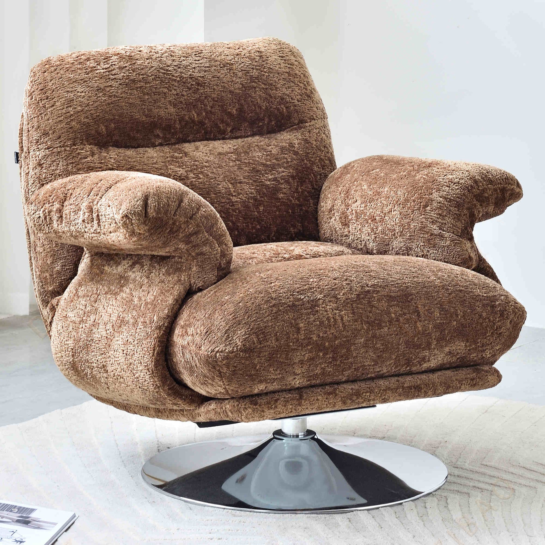 When luxury converges with comfort, this sofa chair makes a striking debut. It emanates the upscale allure of contemporary luxury—its chenille fabric boasts a subtle luster, and a gentle touch envelopes fingertips in silken softness, as if embracing a cloud. Stuffed with plump AA-grade doll cotton, the cushion is fluffy yet supportive; sitting on it feels like sinking into an exclusive sanctuary, with every inch of the body tenderly cradled. Moreover, the integrated curved-panel frame ensures robust stability, paired with seamless swivel functionality: a light twist shifts perspectives, ideal for lounging leisurely or conversing freely. Placed in the living room, it becomes a lavish focal point, infusing elegance and premium texture into the home ambiance, allowing you to indulge in immersive luxury at any moment.