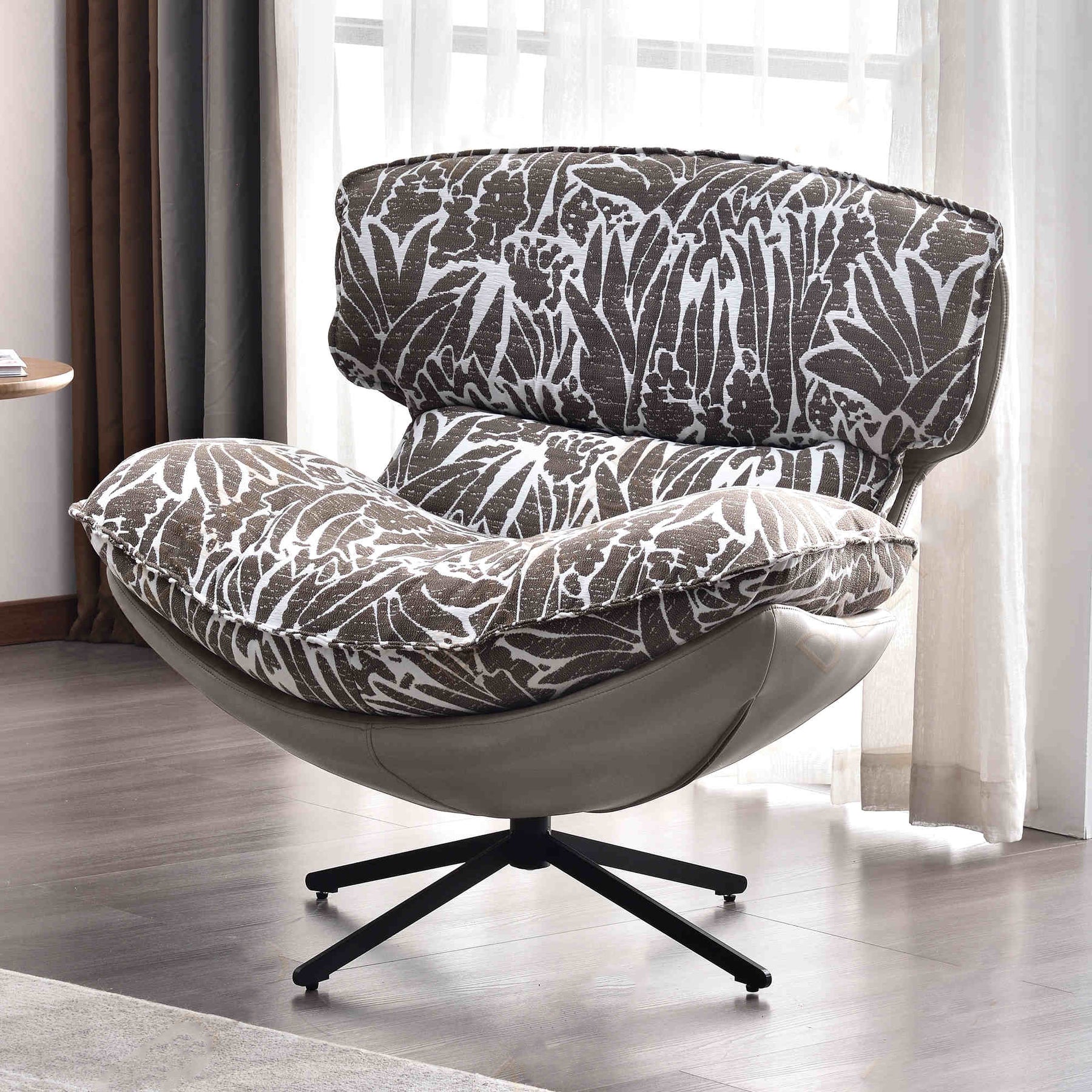 The poetic allure of traditional rustic style is perfectly encapsulated in this sofa chair. The base is crafted from premium eco-friendly faux leather, boasting a delicate texture that seems to encapsulate natural textures. The cushion, made of high-quality cotton and linen fabric and filled with PP cotton, delivers a soft yet supportive seating experience, akin to relaxing in a pastoral meadow. The chair legs are constructed from robust carbon steel, providing stable support for you to lean on without a worry. Furthermore, it comes with a detachable design, making cleaning and upkeep a breeze. Featuring 360° silent rotation, it lets you savor a leisurely moment in tranquility, with the comfort and freedom of pastoral style surrounding you at all times.