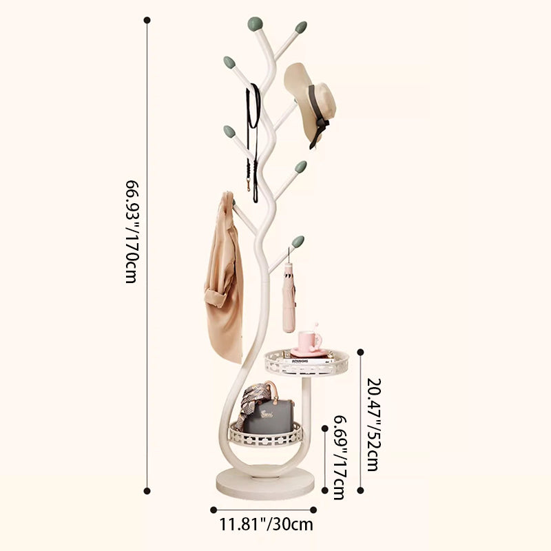 The artistic design is also highly practical, offering multiple strategically placed hooks that provide generous hanging space for coats, bags, hats, and daily essentials, effectively solving entryway clutter. Available in versatile cream white and classic black, it adds a polished, clean modern touch to any living room, bedroom, or entryway. Optimized for North American consumers searching for sculptural metal coat racks, tree-branch design coat stands, modern round entryway storage, and contemporary black or white floor hangers that blend style with practical organization.