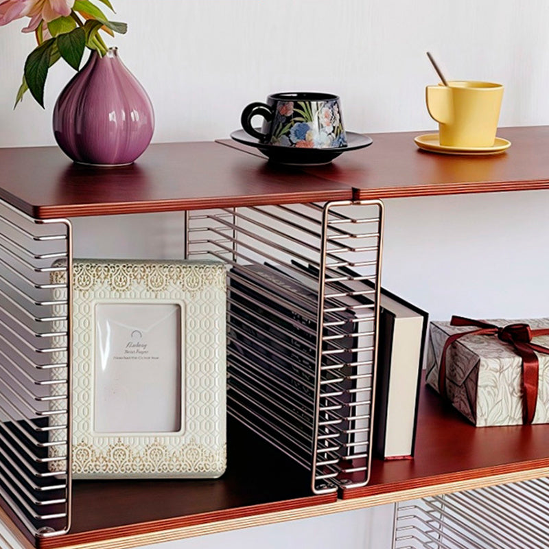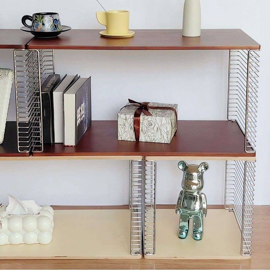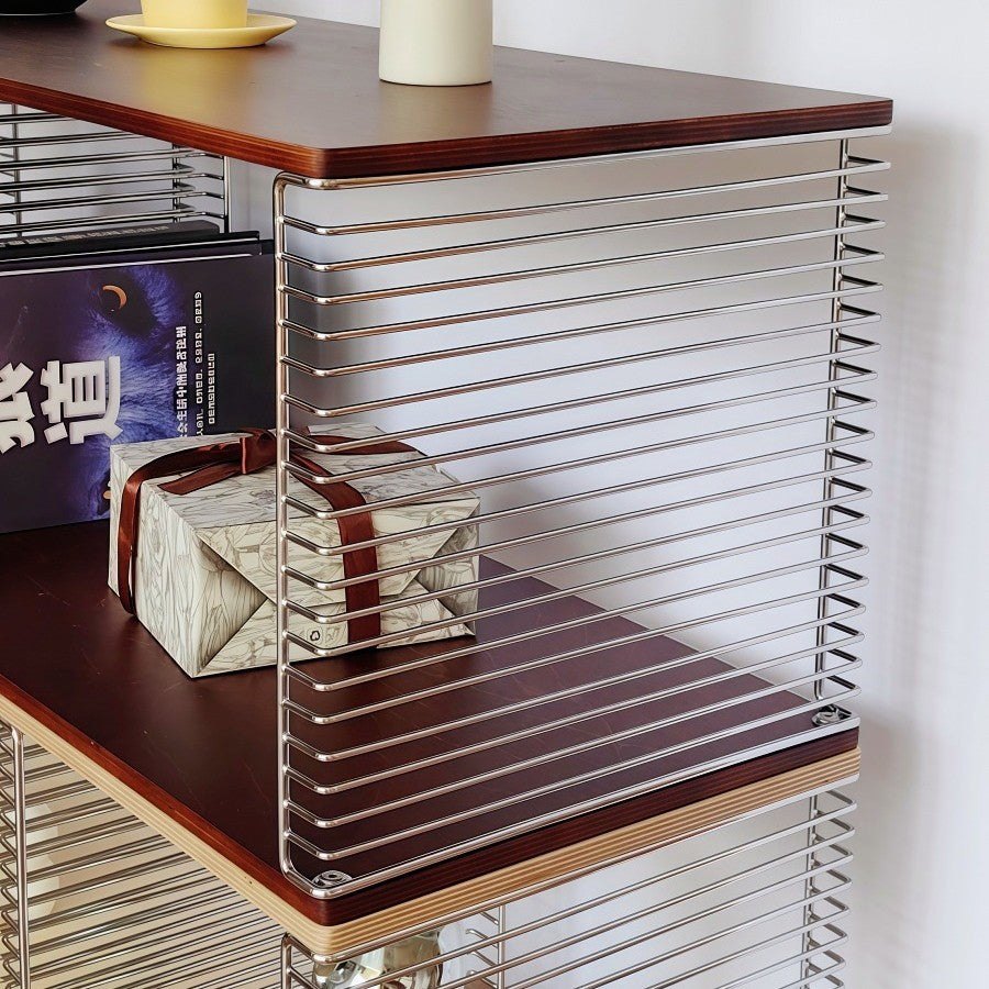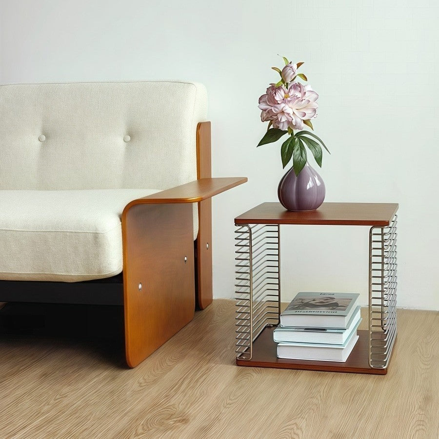 This 2-tier side table combines solid multilayer plywood with sleek stainless steel to create a modern square, hollow-frame design that offers both display and storage versatility. Available in natural wood and cherry wood finishes, it features natural grain detailing and anti-slip foot pads for stable, practical use in any living room.