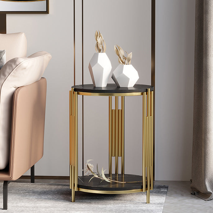 This contemporary Scandinavian side table combines a durable sintered stone top with a sturdy iron frame, available in black, white, and gray. Designed with a 2-tier structure, it features a clear textured surface, strong load-bearing stability, and a sleek round profile—perfect for modern living rooms or balcony spaces.
