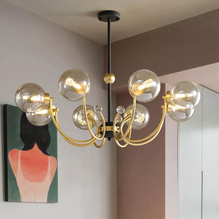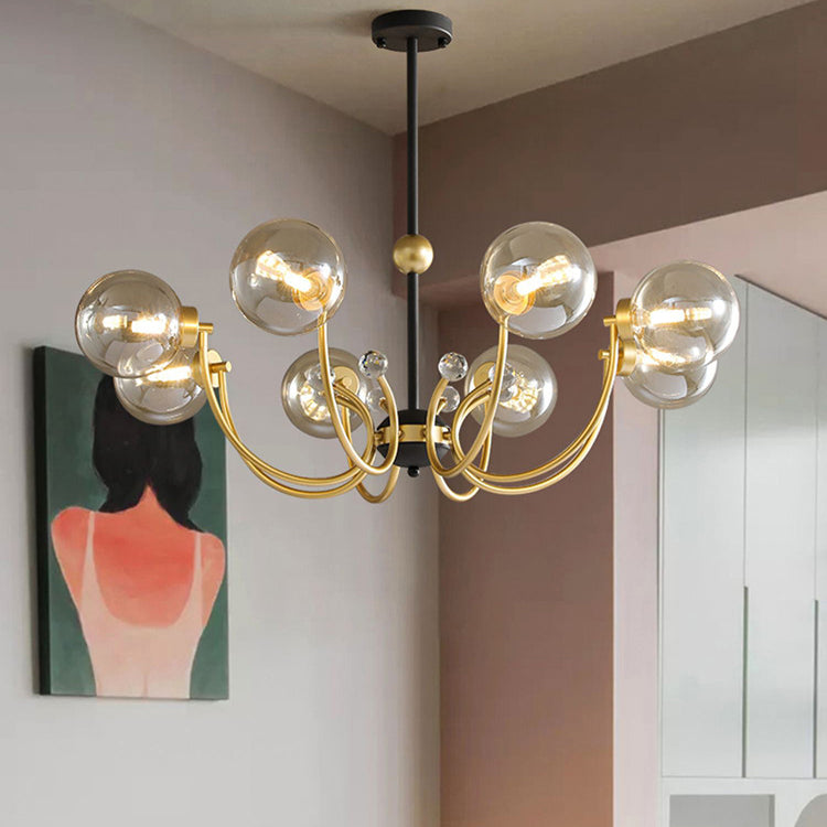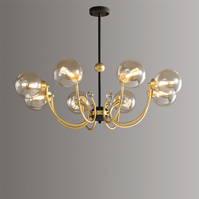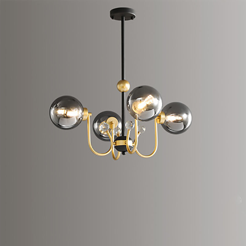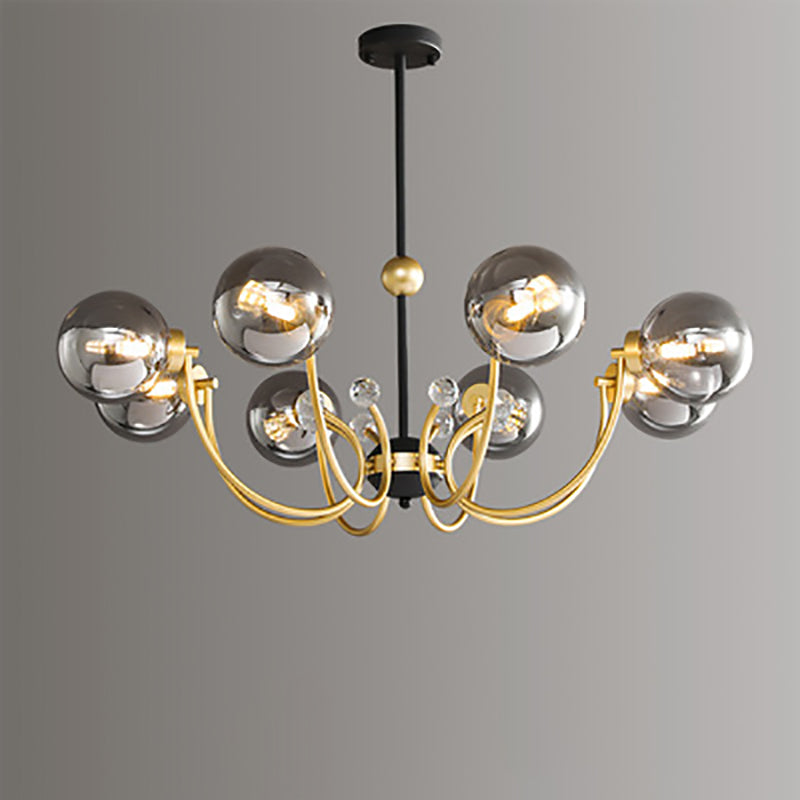 アンバー、ミルキーホワイト、スモーキーグレーのダイヤモンドカットガラスシェードを特徴とする、現代的なスカンジナビアのシャンデリアで空間を高めましょう。半透明の輝きと彫刻的な枝のデザインで、どんな現代的なリビングルームにも洗練されたエレガンスと柔らかく拡散された光を加えます。
