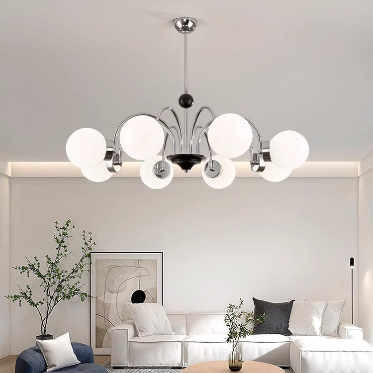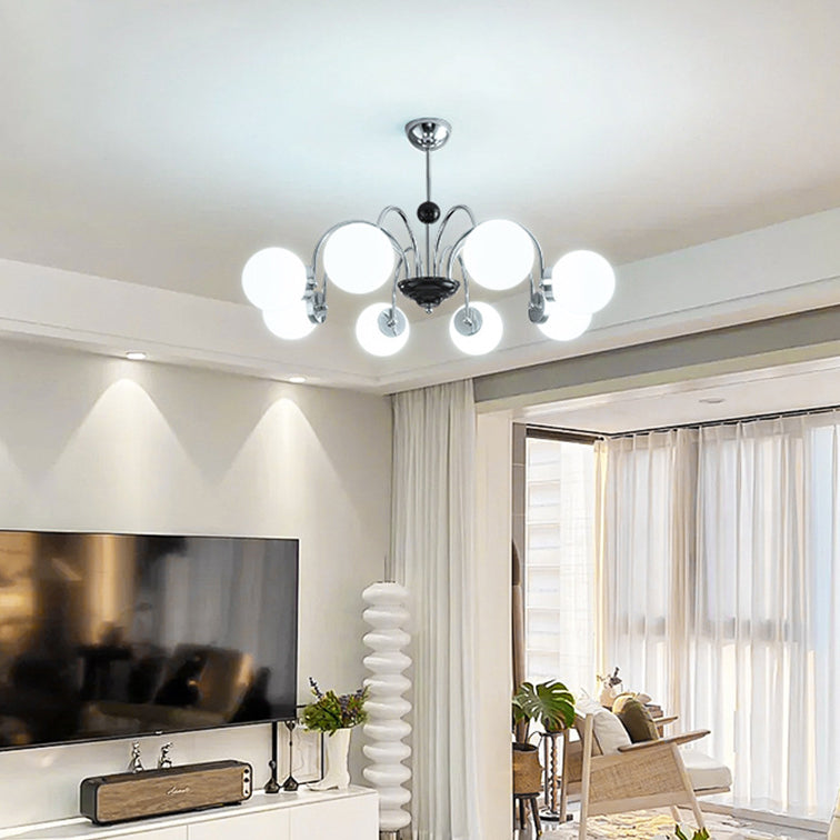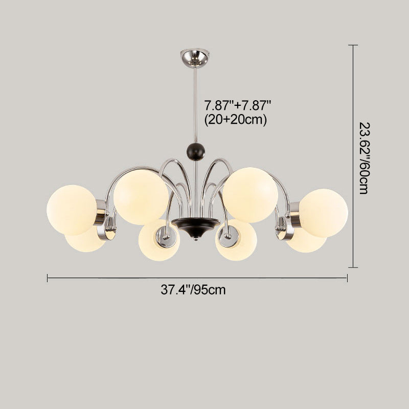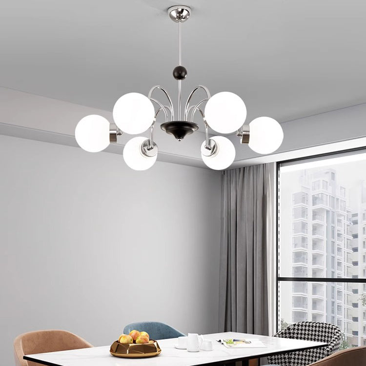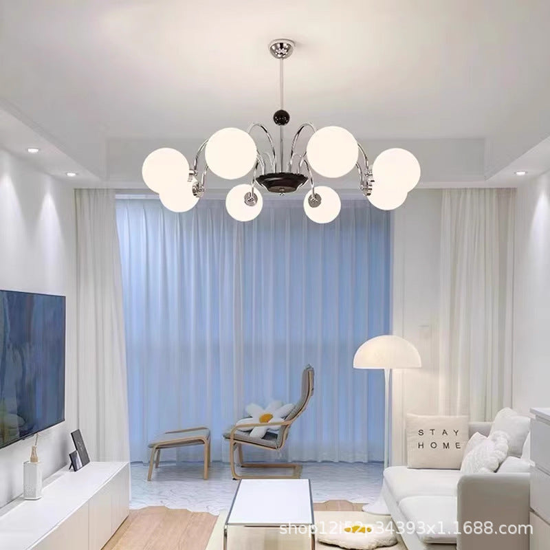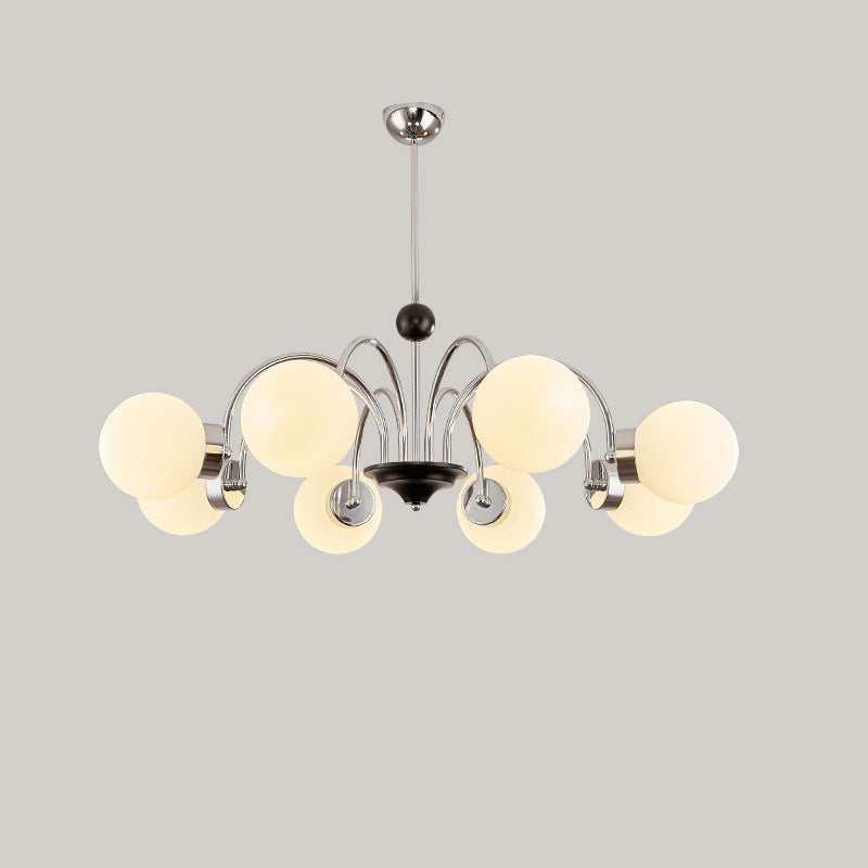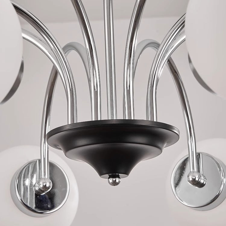 このクローム仕上げのシャンデリアは、伝統的な中国デザインと曲がった枝状のアーム、丸いガラスのシェードを組み合わせており、3灯から8灯まで選べます。柔らかく眩しさのない照明と高温耐性を提供し、エレガントなリビングルームや寝室の照明に最適です。