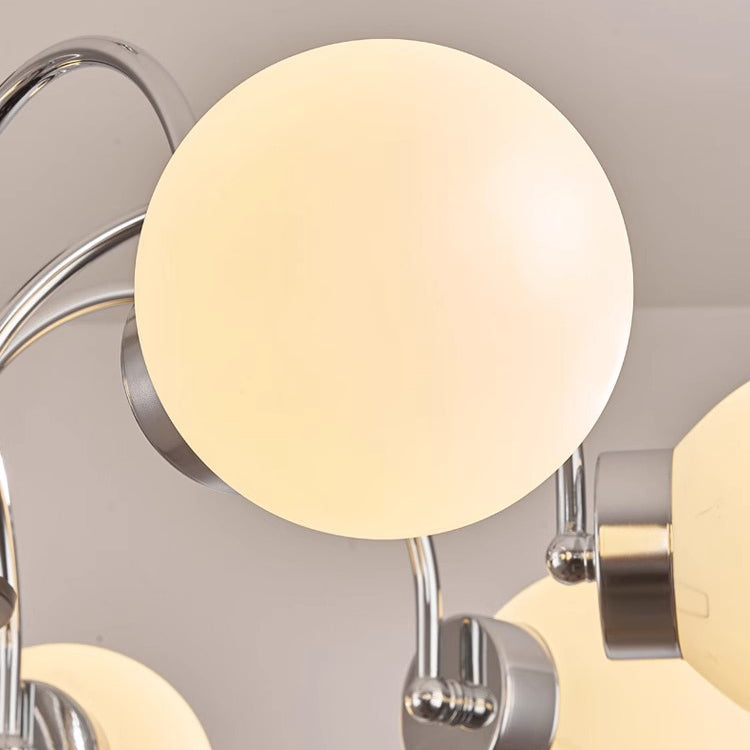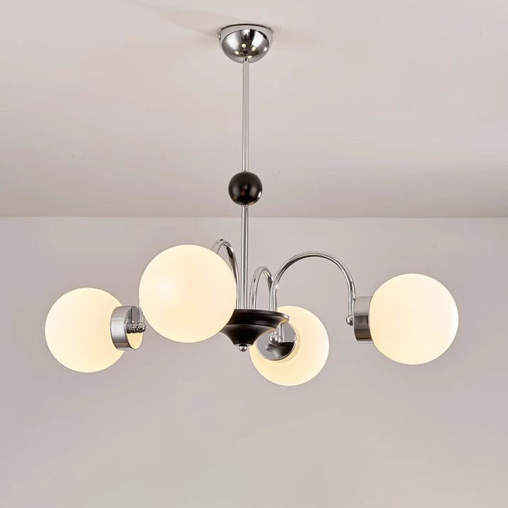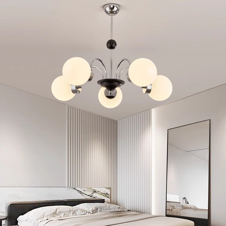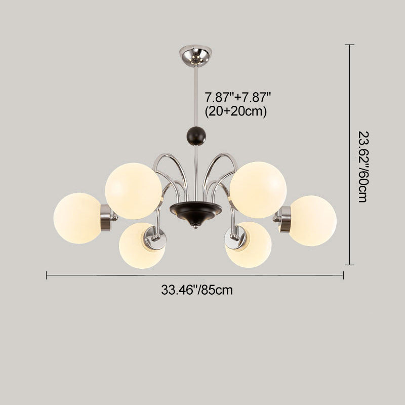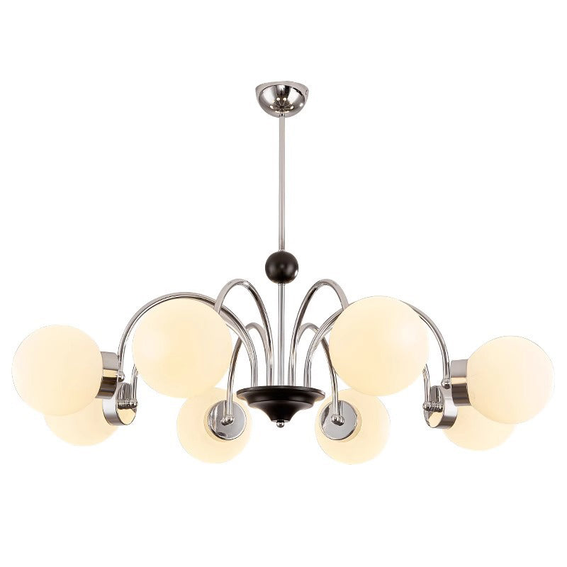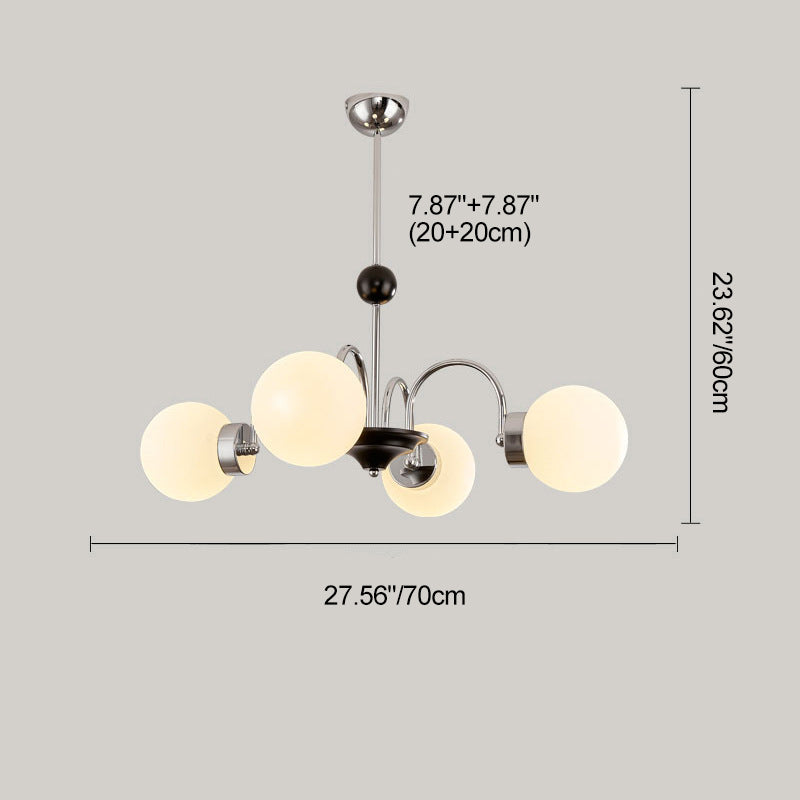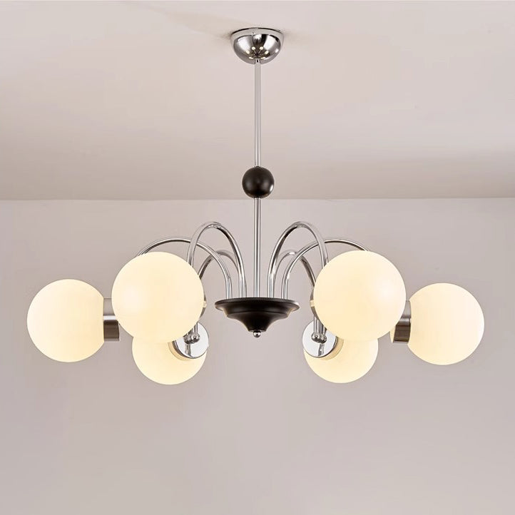 このクローム仕上げのシャンデリアは、伝統的な中国デザインと曲がった枝状のアーム、丸いガラスのシェードを組み合わせており、3灯から8灯まで選べます。柔らかく眩しさのない照明と高温耐性を提供し、エレガントなリビングルームや寝室の照明に最適です。