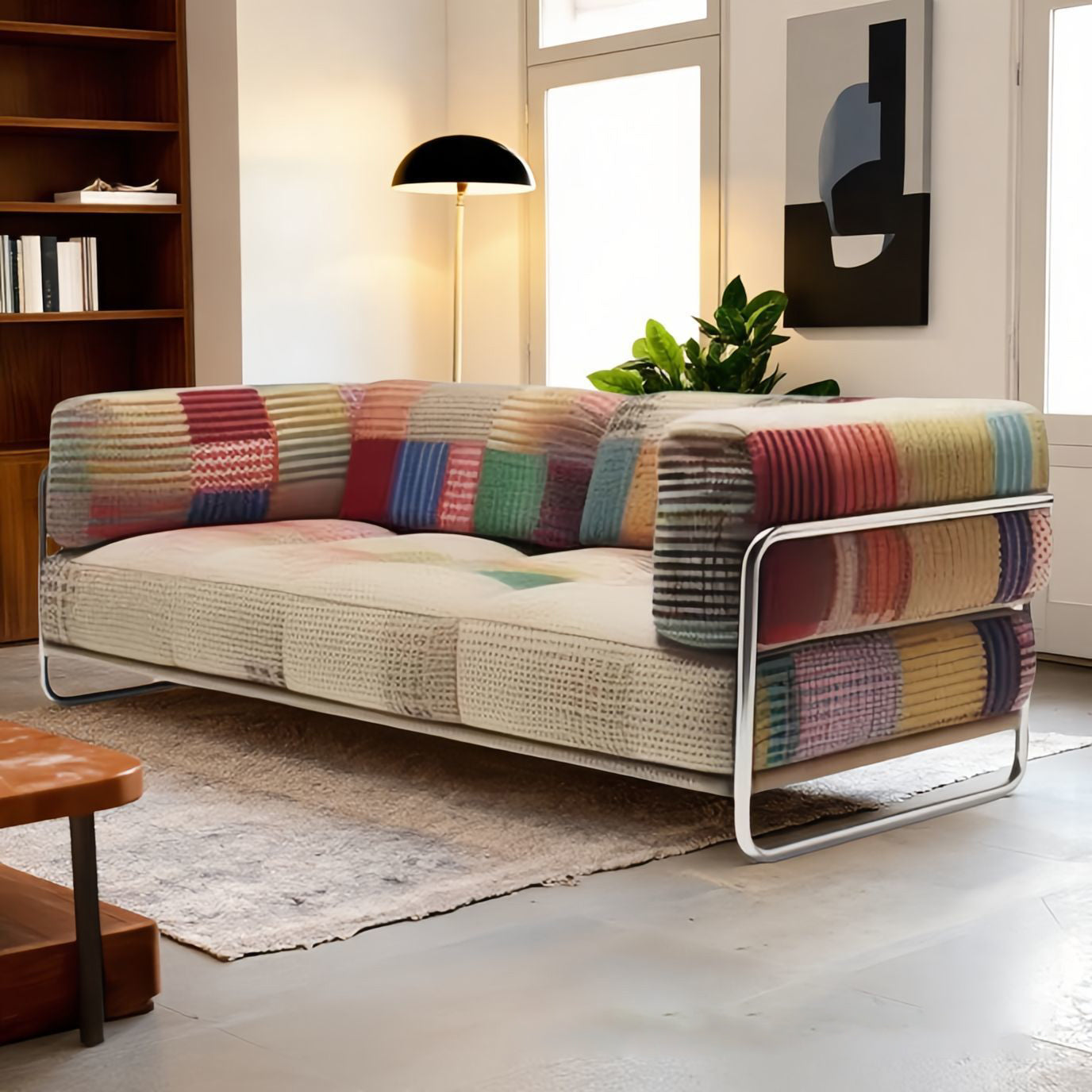 Experience the perfect blend of style and resilience with this modern minimalist sofa. Designed for ultimate relaxation, it boasts a plush, soft rectangular cushion, a supportive backrest, and comfortable armrests. The vibrant upholstery isn't just eye-catching—it's made from a durable, cat-scratch-resistant fabric, ensuring this stylish piece remains a cozy haven for years to come.