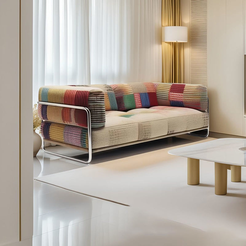 Modern Minimalist Rectangular Cushion Cat-Scratch-Resistant Leather Grain Velvet Velour Fabric Stainless Steel Sponge Sofa Backrest Armrest For Living Room