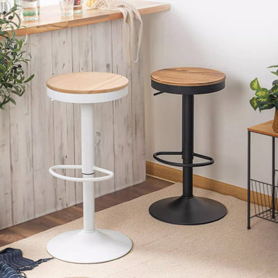 Modern Minimalist Round Solid Wood Carbon Steel Bar Stool For Dining Room