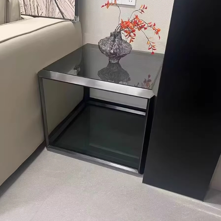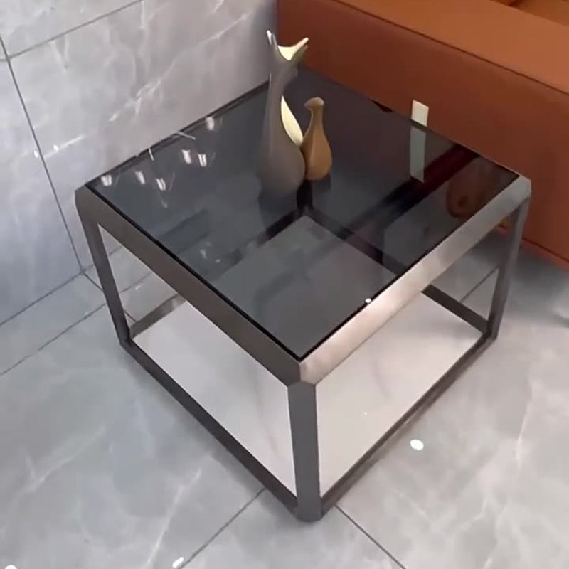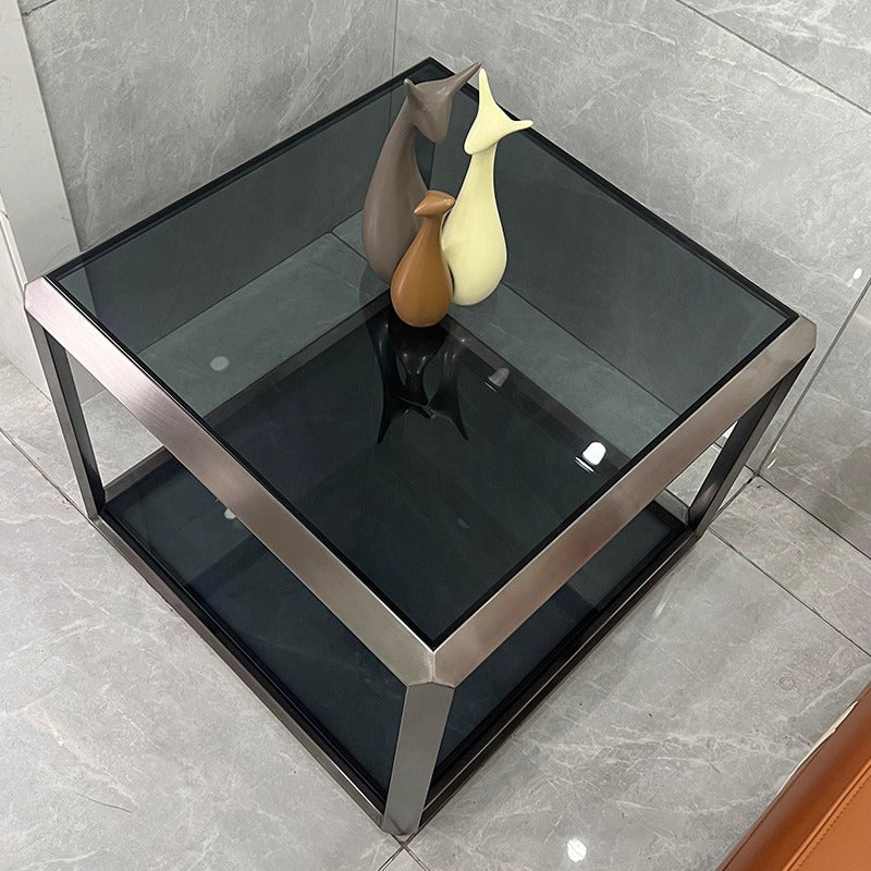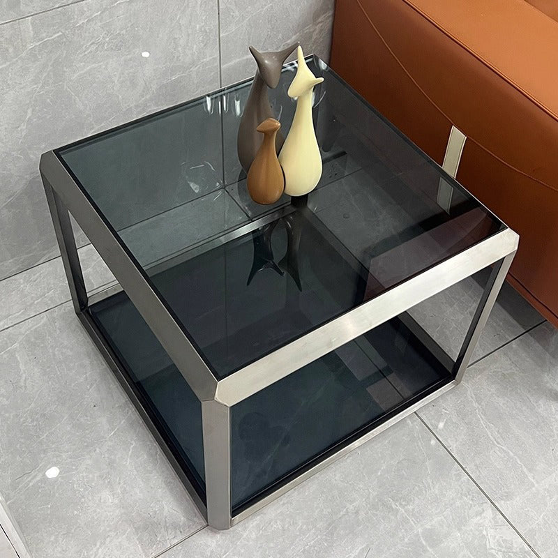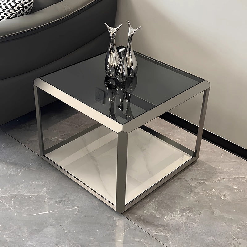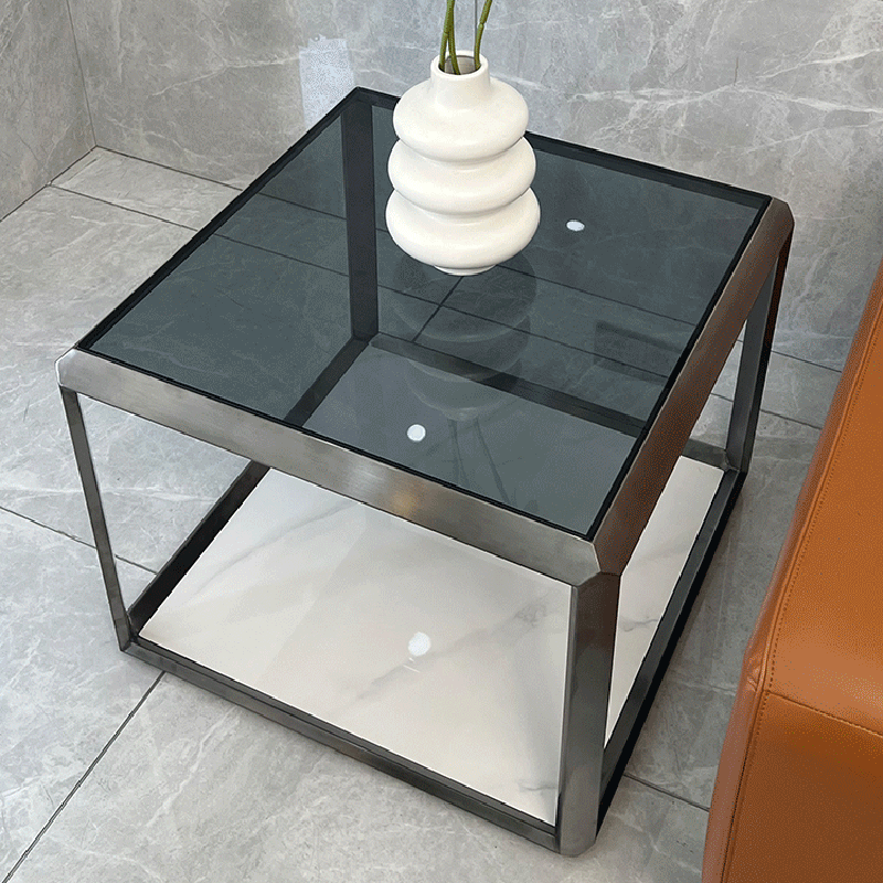 Contemporary Scandinavian Sintered Stone Glass Stainless Steel Square Coffee Table 2-Tier For Living Room