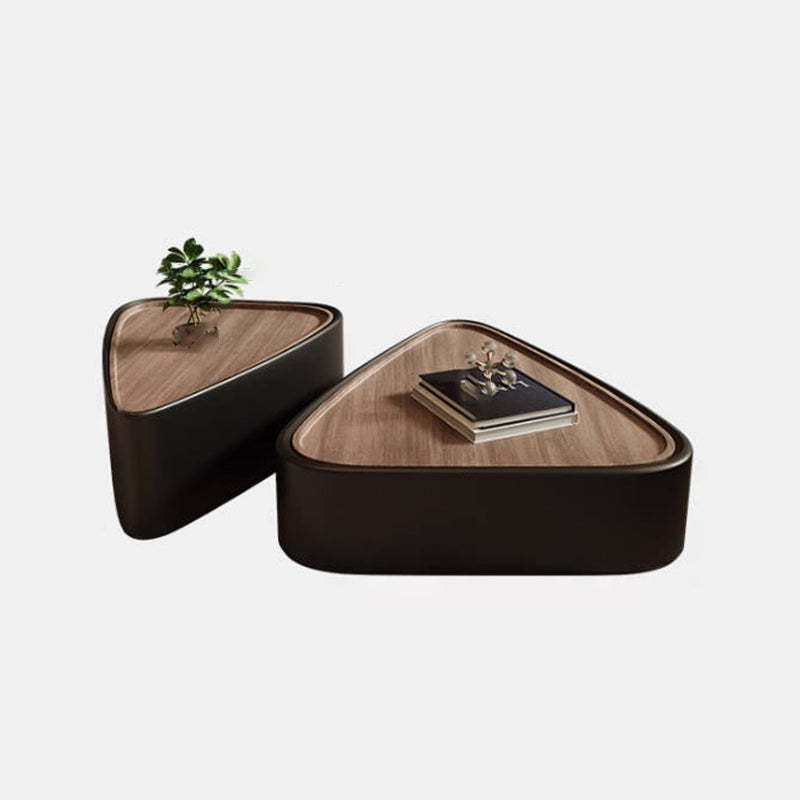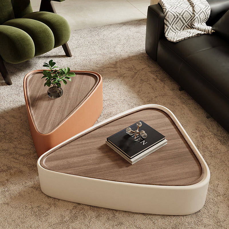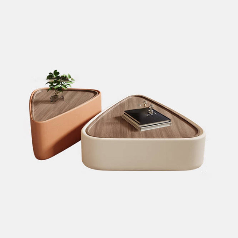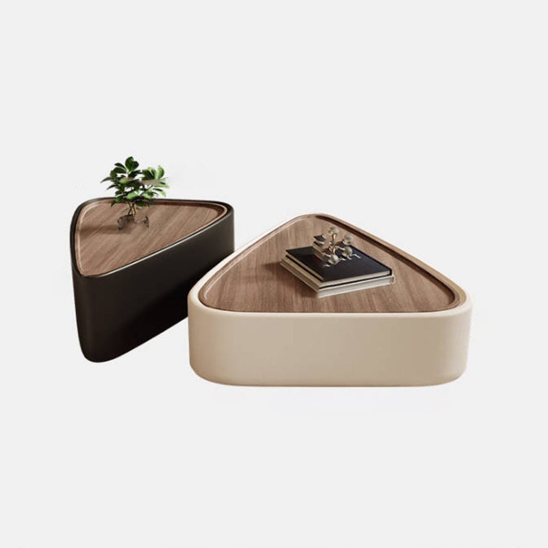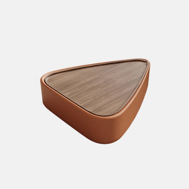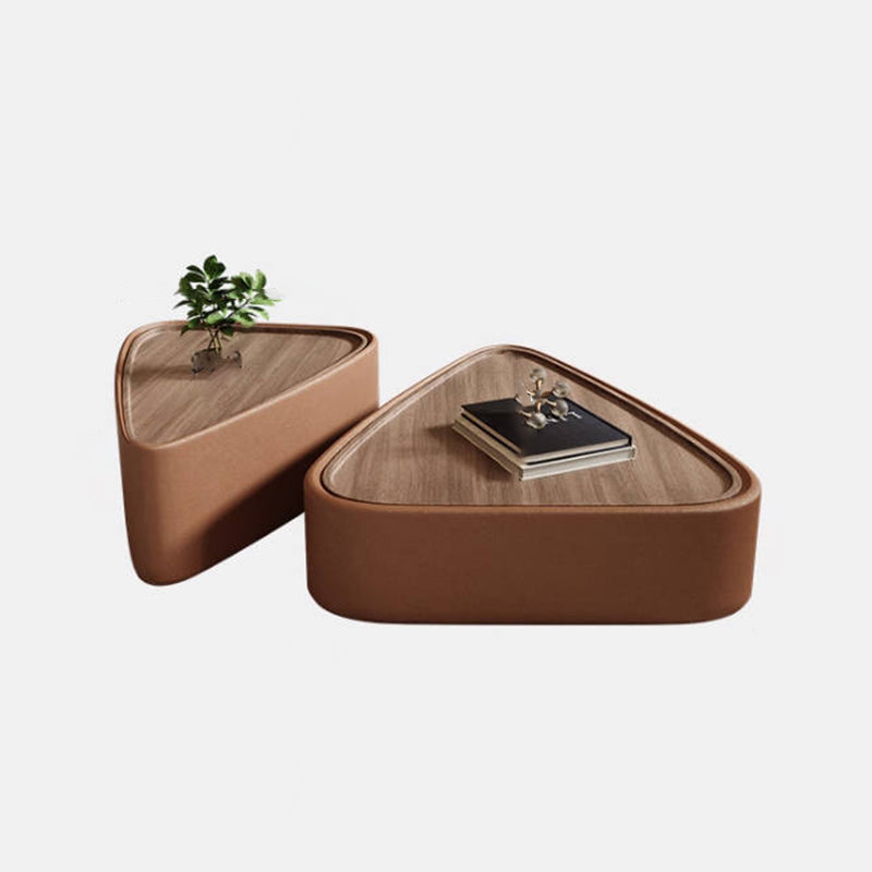 Modern Luxury Triangular Veneered Multi-layer Solid Wood Panel Faux Nappa Leather Coffee Table Combination 1-Cabinet For Living Room