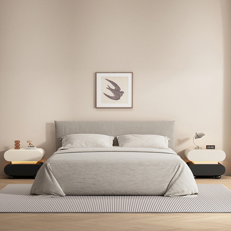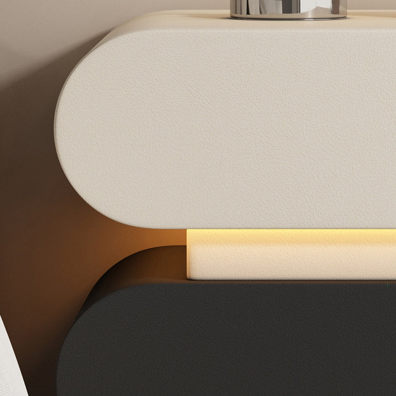 Contemporary Creative Stacked Rounded Rectangle Faux Leather Wood Sensor Light Nightstand 2-Drawer For Bedroom