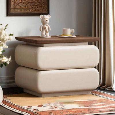 Modern Minimalist Rectangular Solid Wood Cat Claw Leather Nightstand 2-Drawer For Bedroom