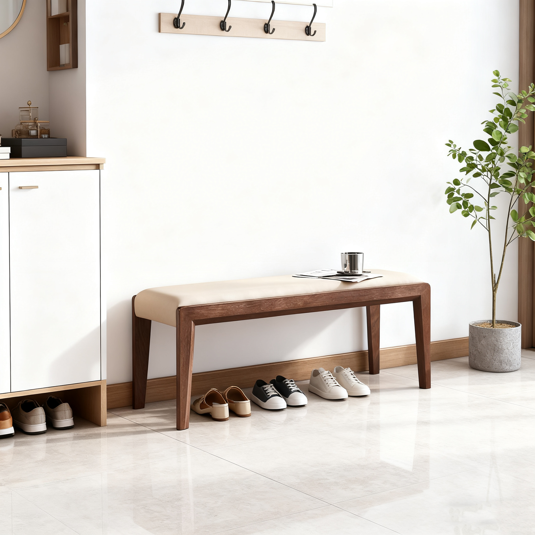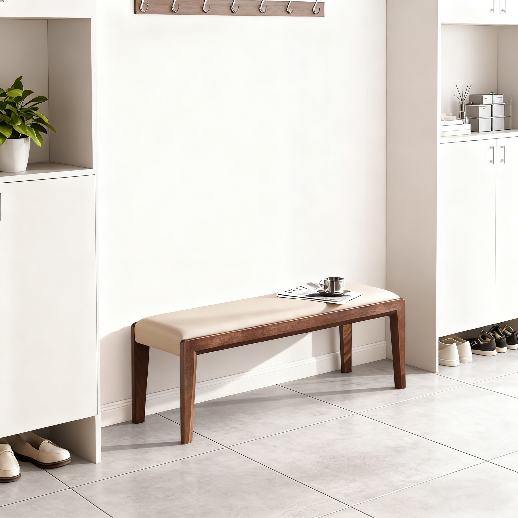 Contemporary Scandinavian Rectangular Ash Wood Microfiber Leather Sponge Bench Backless Armless For Entryway