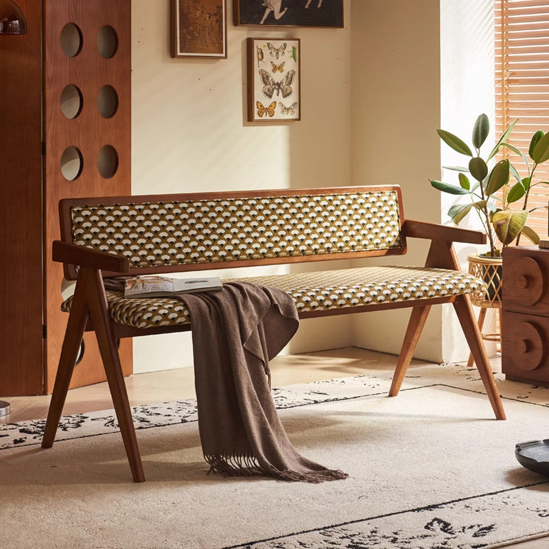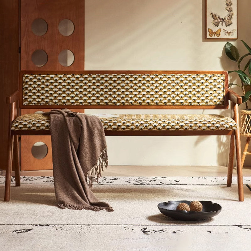 Traditional Rustic Rectangular Ash Wood Solid Wood Board Fabric Sponge Bench Backrest Armrest For Living Room