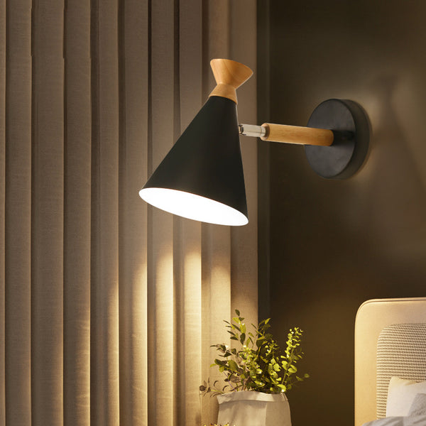 ノルディッククリエイティブベルシェードウッド1ライトウォールスコンスランプ