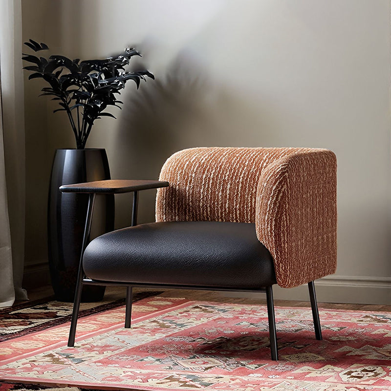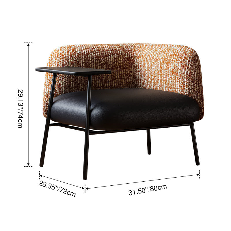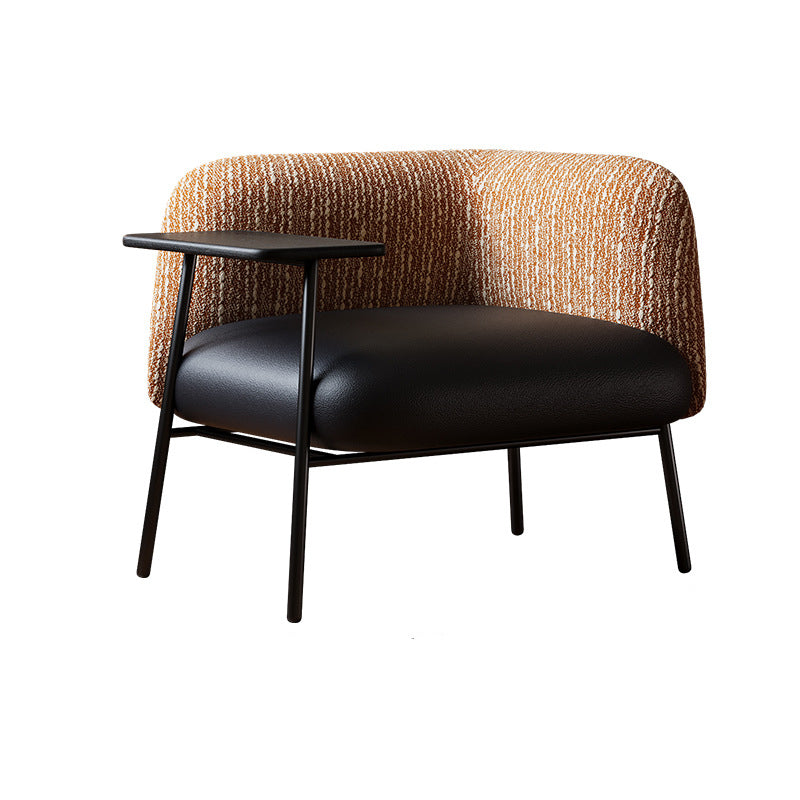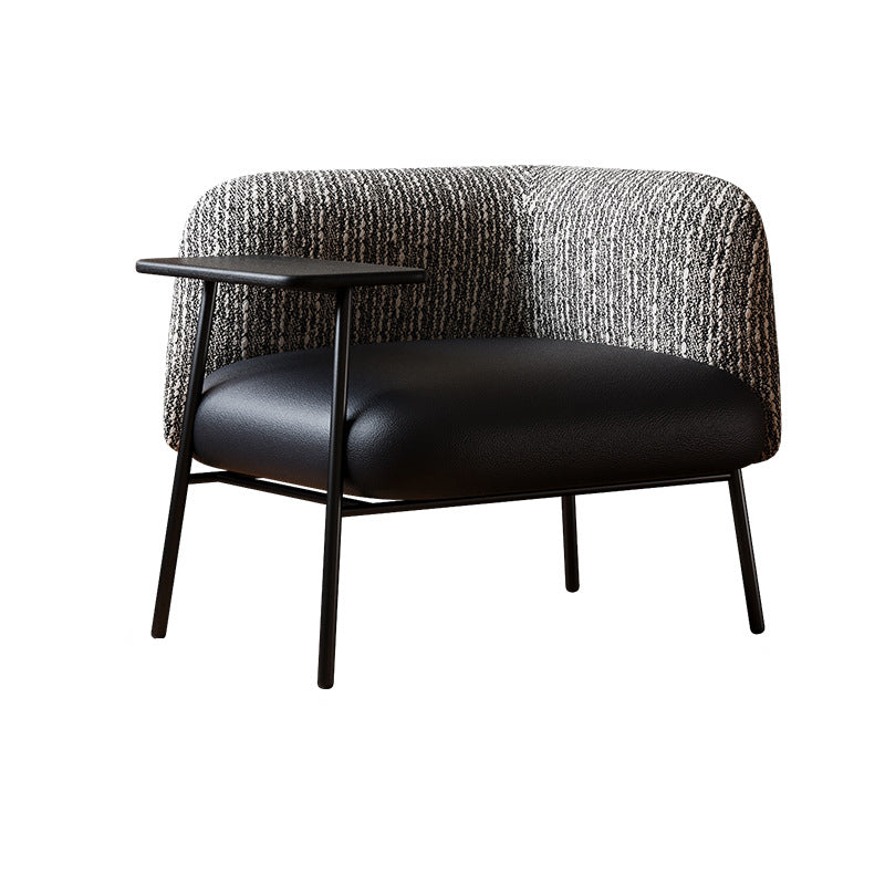 Modern Minimalist Rectangular Carbon Steel Solid Wood PU Leather Cotton-Linen Accent Chair Backrest Armrest For Living Room